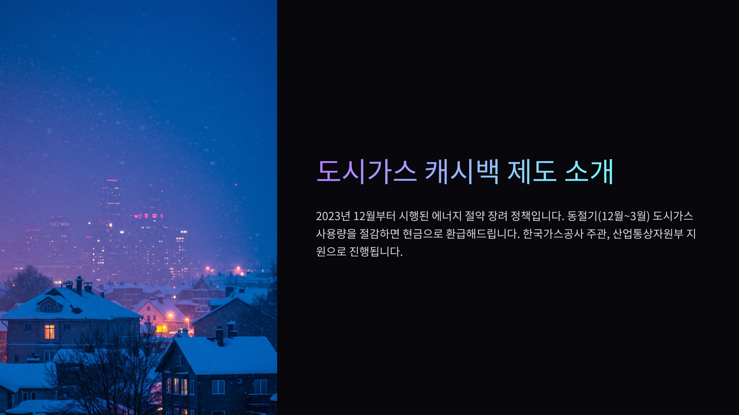| 도시가스 캐시백 | 사용량 절감 시 최대 15,000원 지급 |