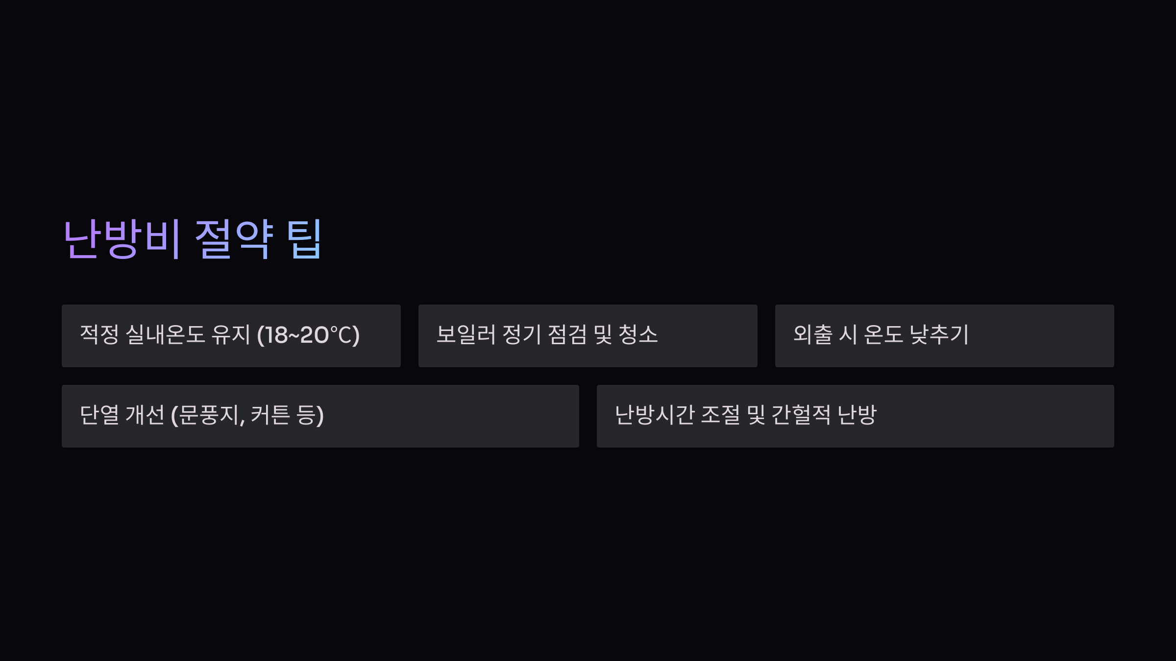 - 취침 전 난방 끄기: 자는 동안 불필요한 가스 낭비 방지