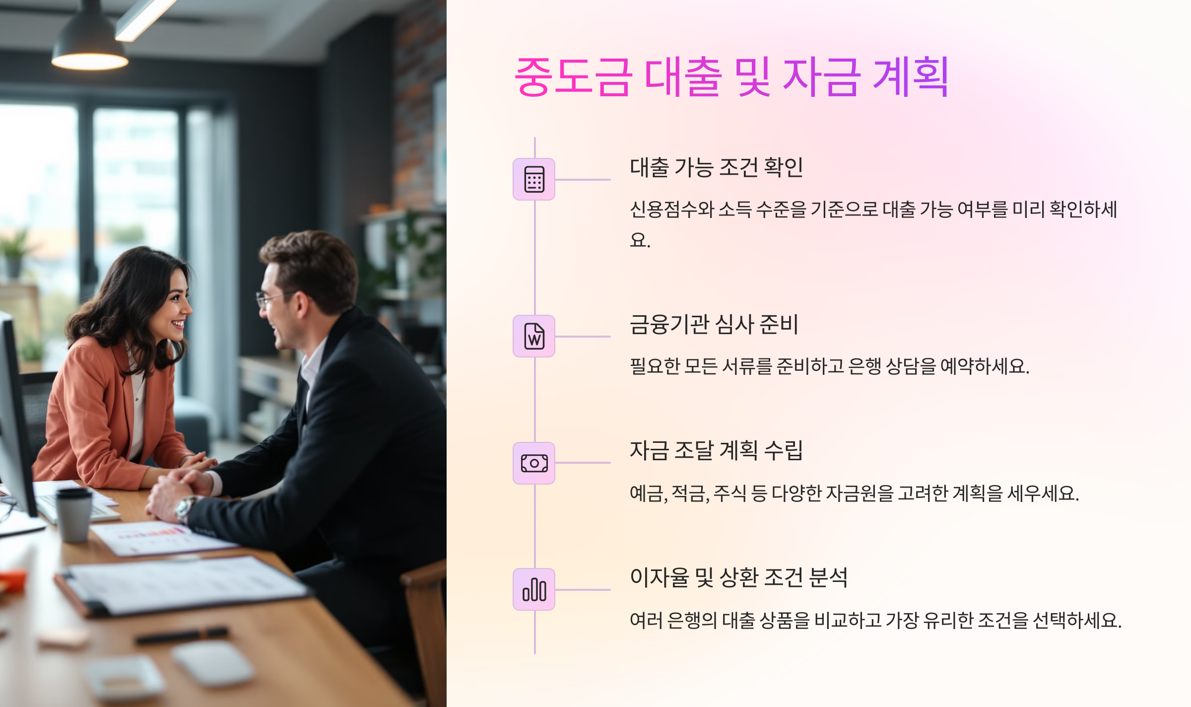 서류 준비는 귀찮아 보여도 당첨의 확정을 위한 중요한 과정이에요. 특히 특별공급을 노리는 분들은 더 철저하게 준비해두는 게 좋아요. 다음 문단에서는 드디어 돈 문제! ‘중도금 대출’로 넘어갈게요. 🏦