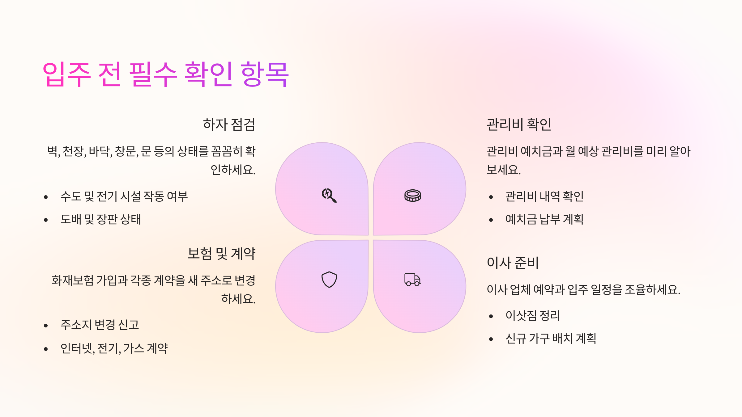 모든 과정을 마친 뒤에야 비로소 진짜 ‘내 집’이 되는 거예요. 입주는 시작이지 끝이 아니라는 점, 꼭 기억해주세요! 🔑