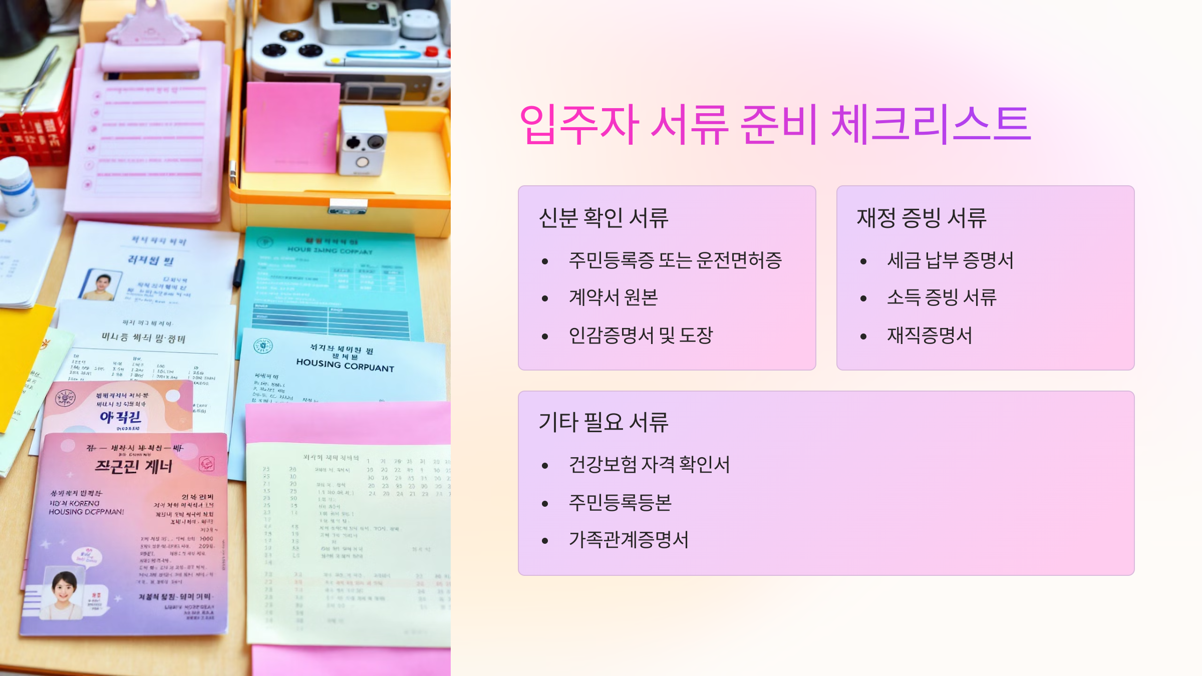 계약금은 단순한 돈 이상의 의미를 가져요. 내 집 마련의 첫 단추이자, 실제 청약 성공의 첫 증거이니까요. 다음은 '입주자 서류 준비'에 대해 알아볼게요! 📂