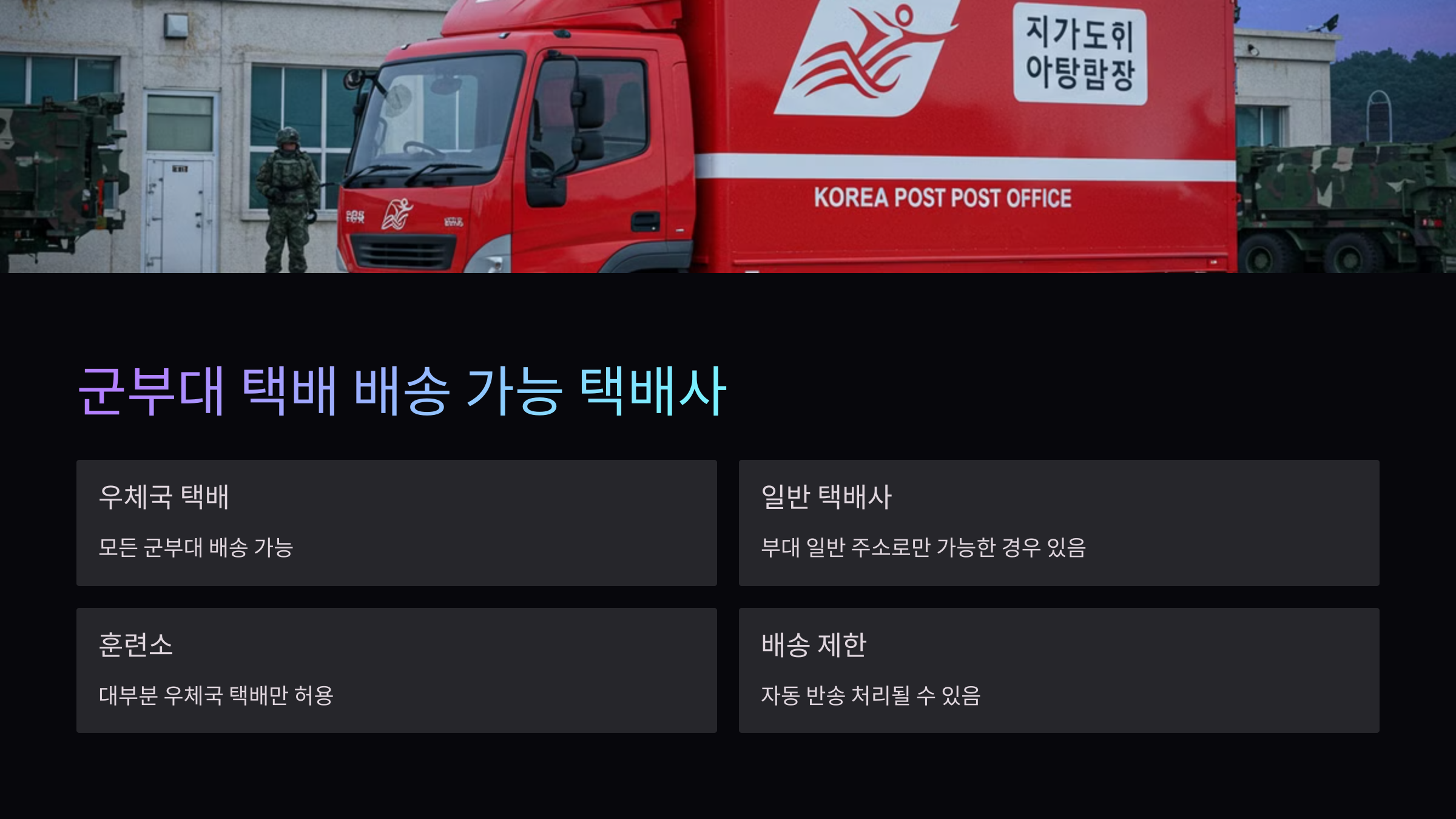 군부대 택배 배송 가능 택배사