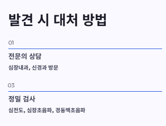 | 전문의 상담 | 심장내과, 신경과 방문 | 정확한 진단 |