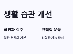 | 생활 습관 개선 | 금연, 운동, 식단 관리 | 심혈관 건강 향상 |