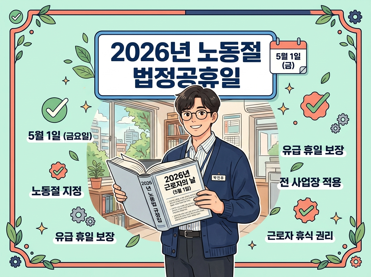근로자의 노고를 위로하고 근무 의욕을 높이기 위해 제정된 기념일로, 근로기준법 제55조에 따라 모든 근로자에게 법정 유급휴일로 강력하게 보장되는 날입니다. (출처: 고용노동부, 2026년 기준)