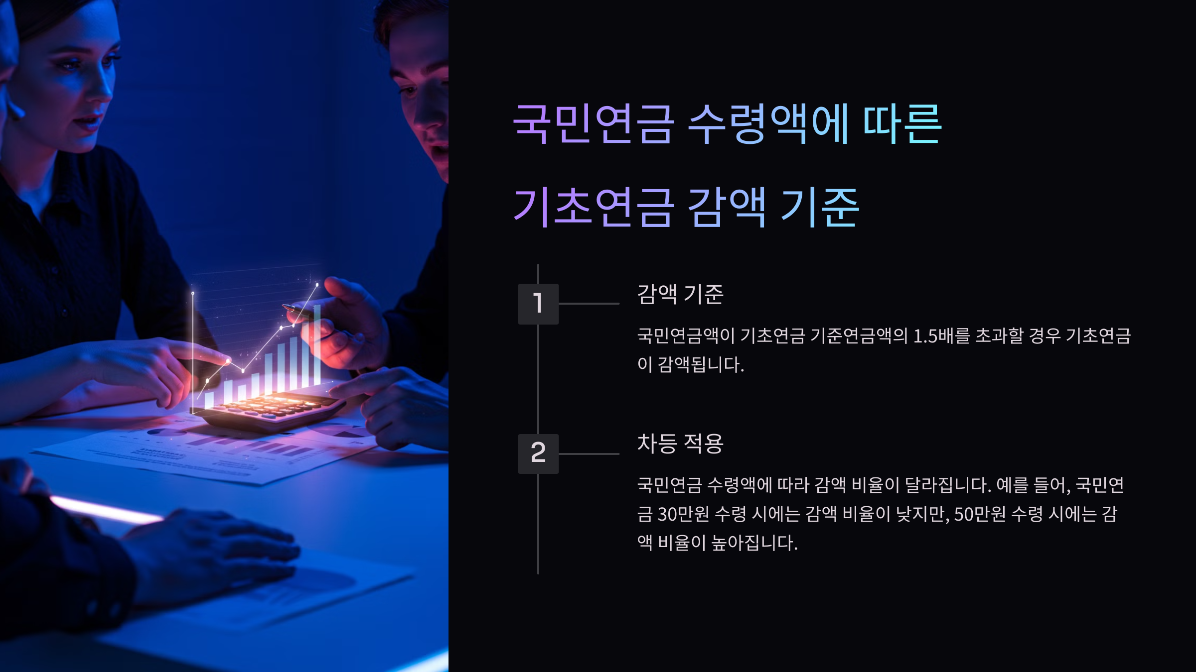 기초연금은 소득인정액을 기준으로 지급되기 때문에 국민연금이 많으면 소득이 높다고 판단되어 일부 감액될 수도 있어요. 하지만 국민연금을 받는다고 해서 기초연금 수급 자격이 자동으로 사라지는 것은 아니니, 정확한 감액 기준을 이해하는 것이 중요해요.