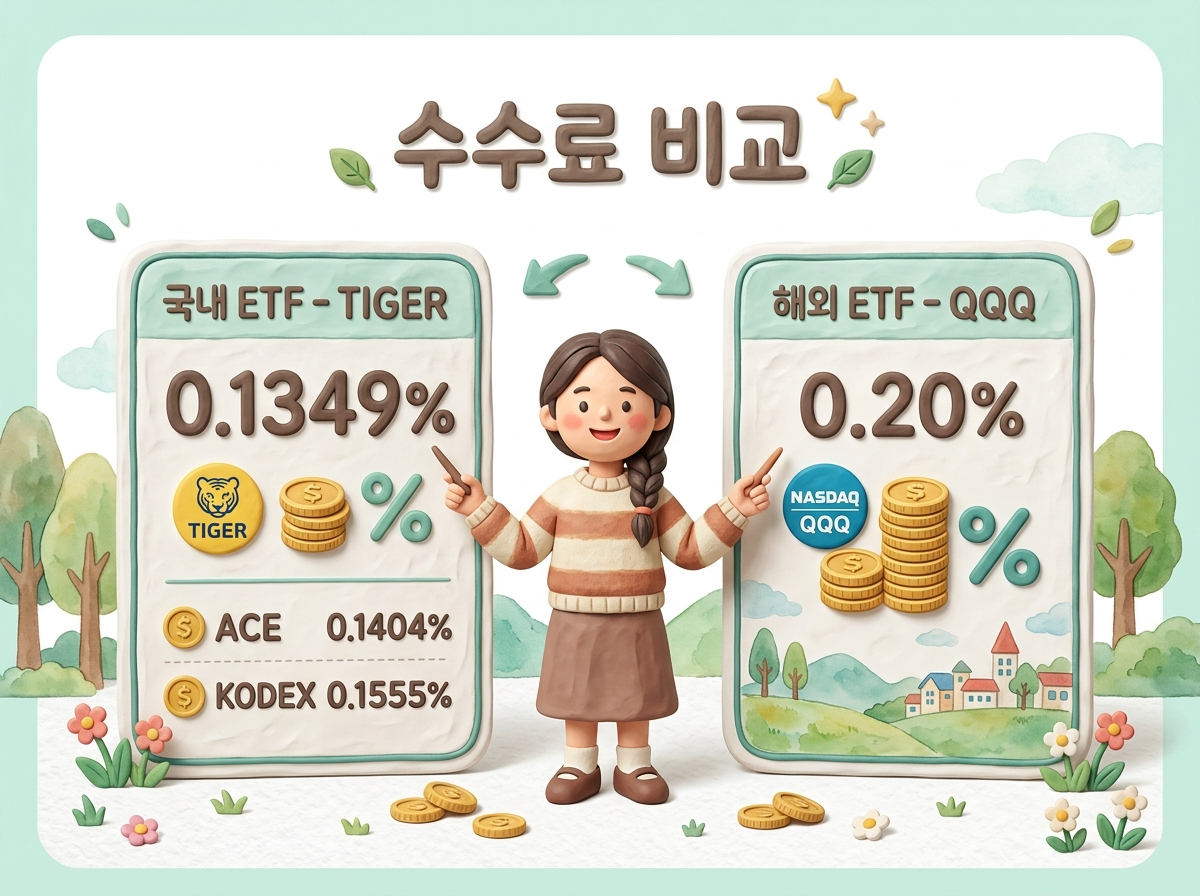 수수료만 놓고 보면 국내 ETF가 저렴해 보이지만, 실질 총비용(매매중개수수료 포함)까지 따지면 그 차이가 줄어듭니다. 투자 금액과 기간에 따라 본인에게 유리한 쪽을 선택하는 것이 핵심이에요.