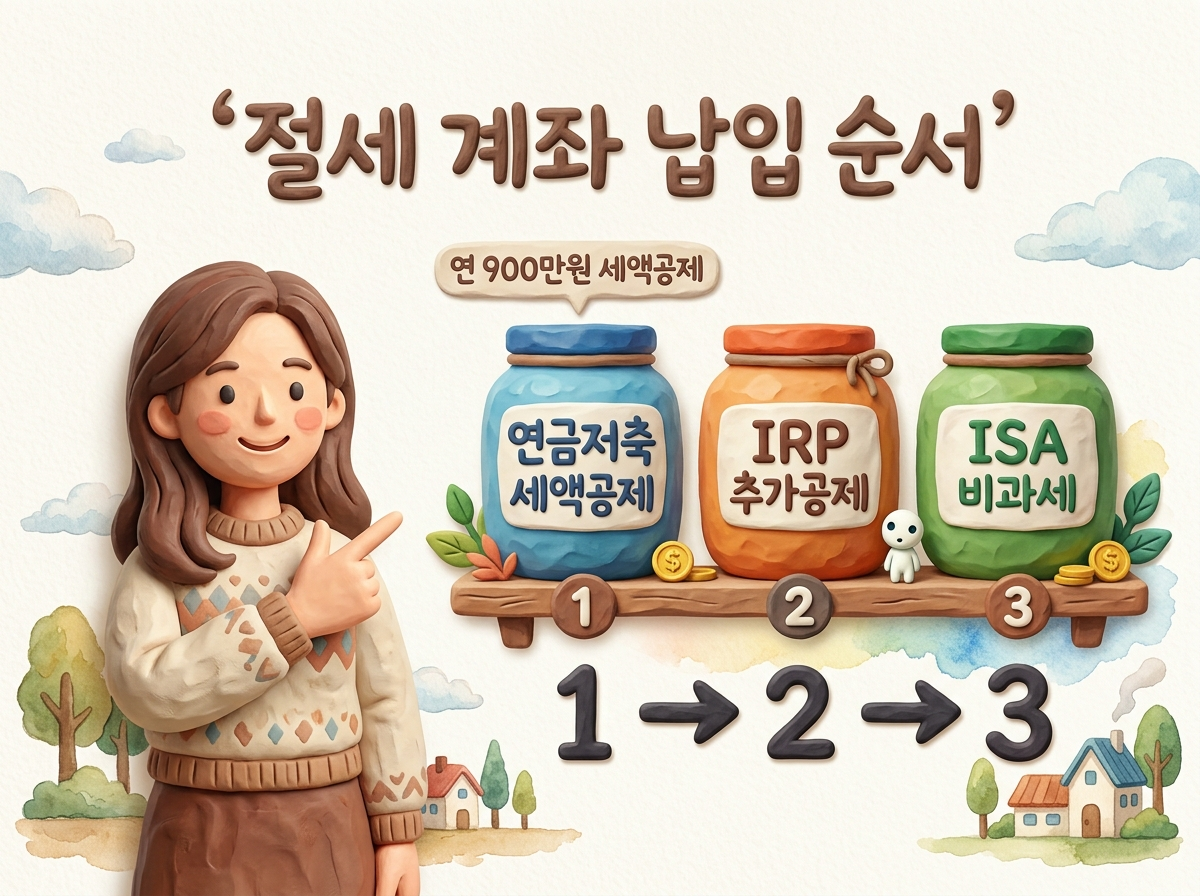 전문가들이 추천하는 납입 순서는 연금저축(세액공제) → IRP(추가 세액공제) → ISA(비과세) 순서입니다. 연금저축과 IRP는 합산 연 900만 원까지 세액공제를 받을 수 있고, ISA는 2026년 기준 비과세 한도가 확대되어 매력이 더 커졌어요.