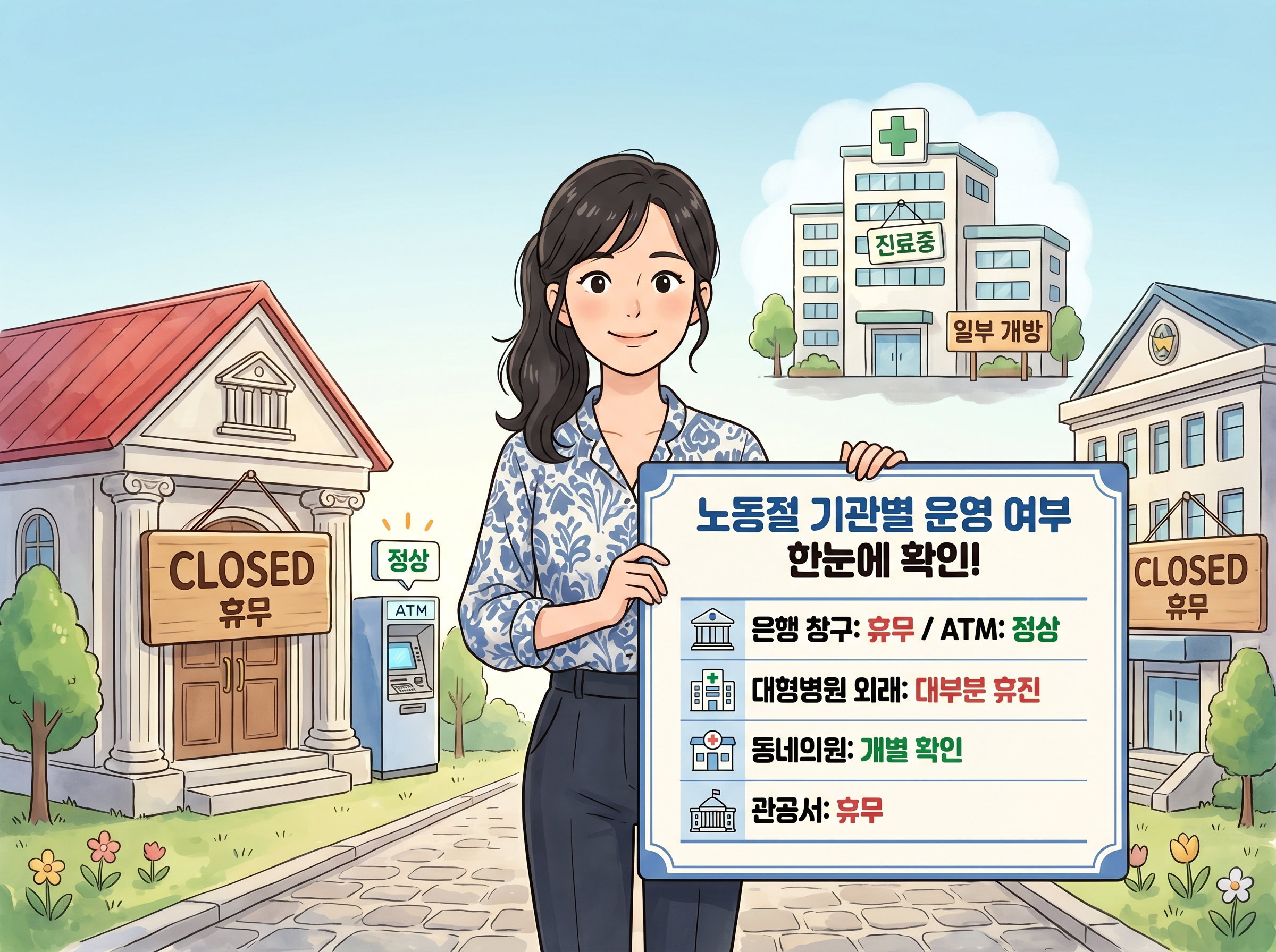 학교 외에도 5월 1일에 문을 여는지 닫는지 헷갈리는 기관들이 많죠. 법정 공휴일이 됐으니 당연히 다 쉬겠지?라고 생각하시면 조금 틀릴 수 있어요. 기관별로 정리해 드릴게요.