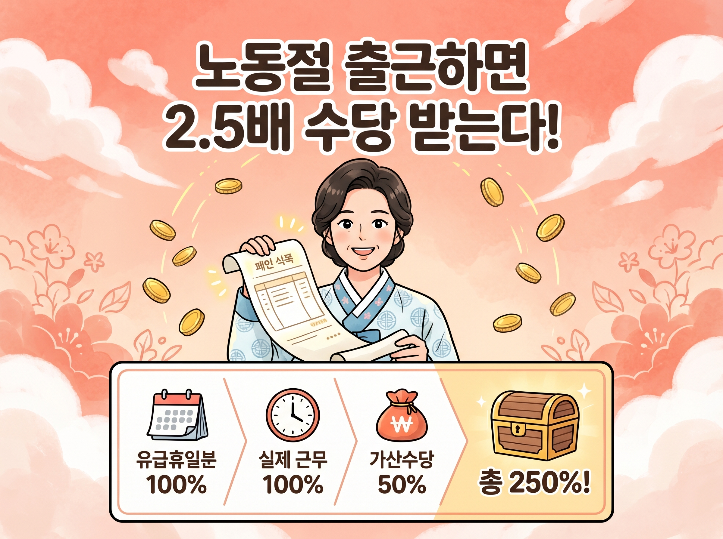 노동절이 법정 공휴일이 된 덕분에, 이날 어쩔 수 없이 출근한 분들은 최대 2.5배의 임금을 받을 수 있어요. 이 계산법을 제대로 알고 있어야 억울하게 손해 보는 일이 없답니다.