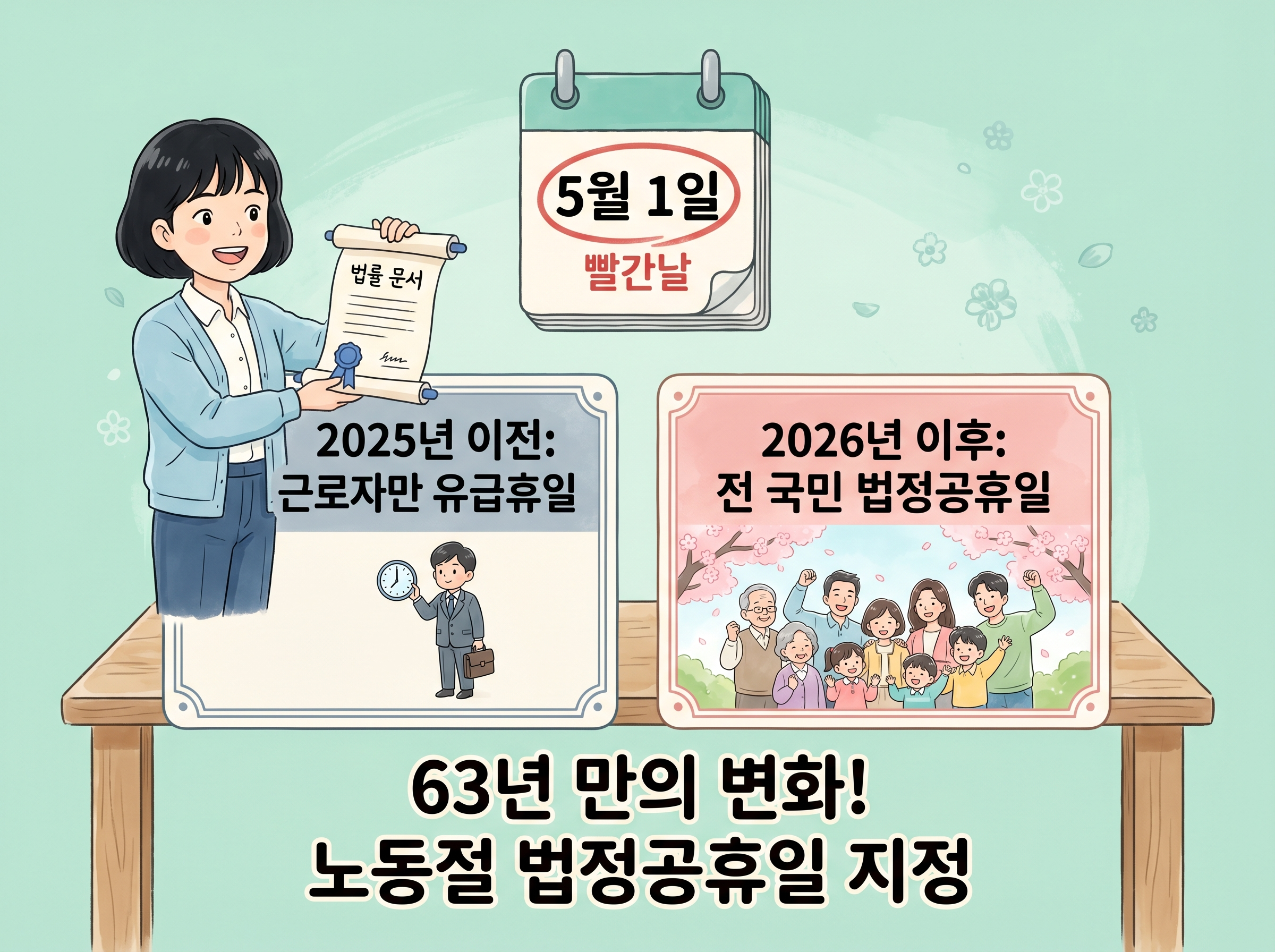 2026년부터 노동절(5월 1일)은 '법정 공휴일'로, 고용 형태와 관계없이 전 국민이 쉬는 날이 됩니다.