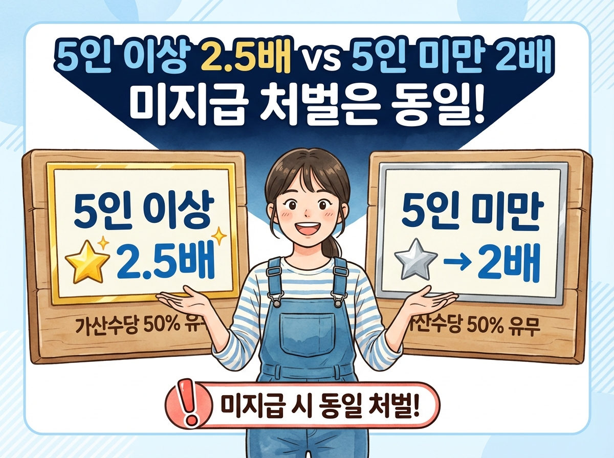 3. 5인 이상 vs 5인 미만, 수당 차이 한눈에 비교