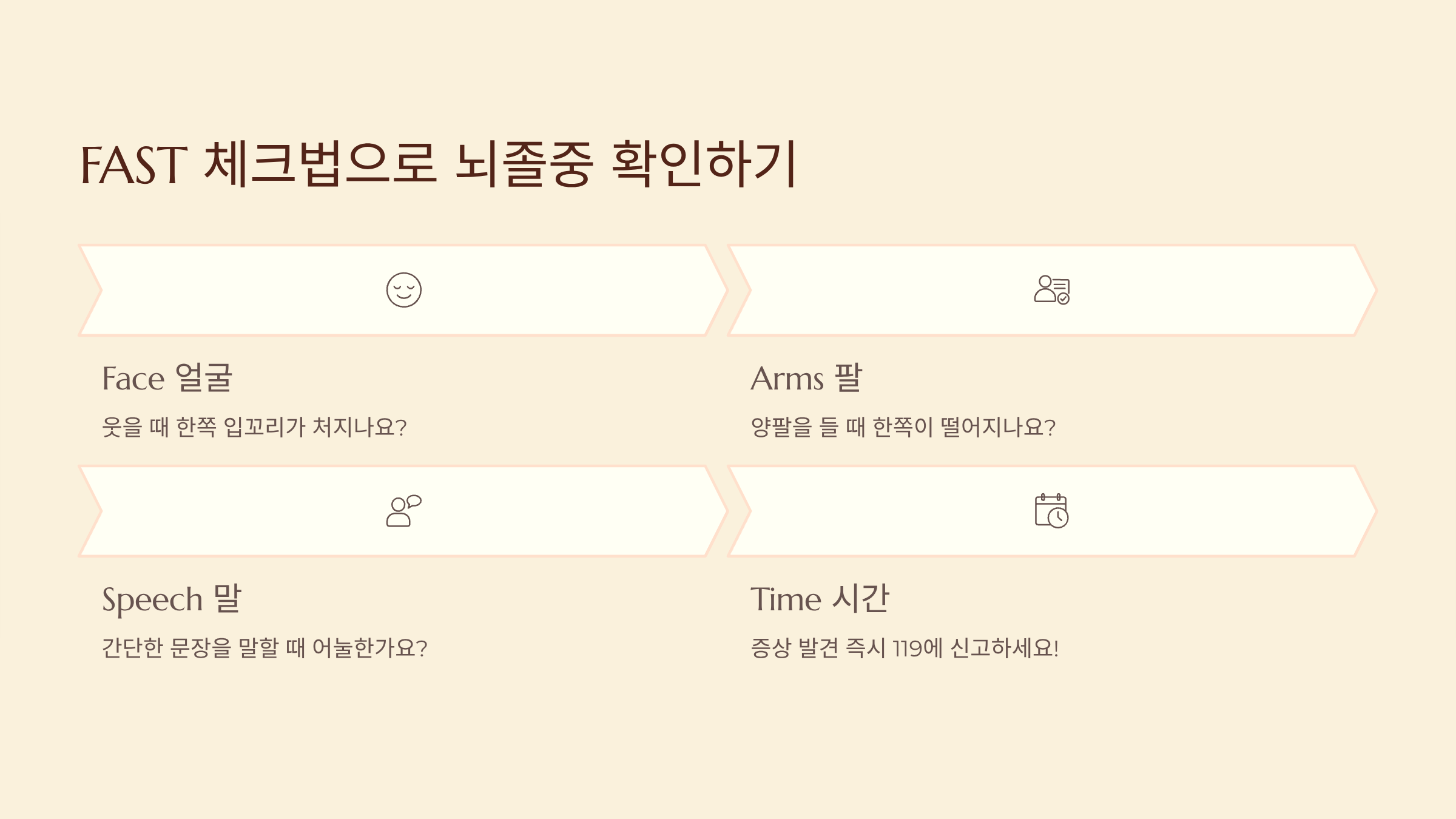 뇌졸중은 골든타임이 정말 중요한 질환이에요. 증상을 빨리 알아차리고 병원에 가는 것만으로도 예후가 완전히 달라질 수 있거든요. 가장 대표적인 증상은 얼굴이나 팔, 다리 중 한쪽이 갑자기 마비되거나 감각이 둔해지는 거예요. 특히 편측 마비나 손발 저림, 힘이 빠지는 증상이 나타나면 즉시 119를 불러야 해요.