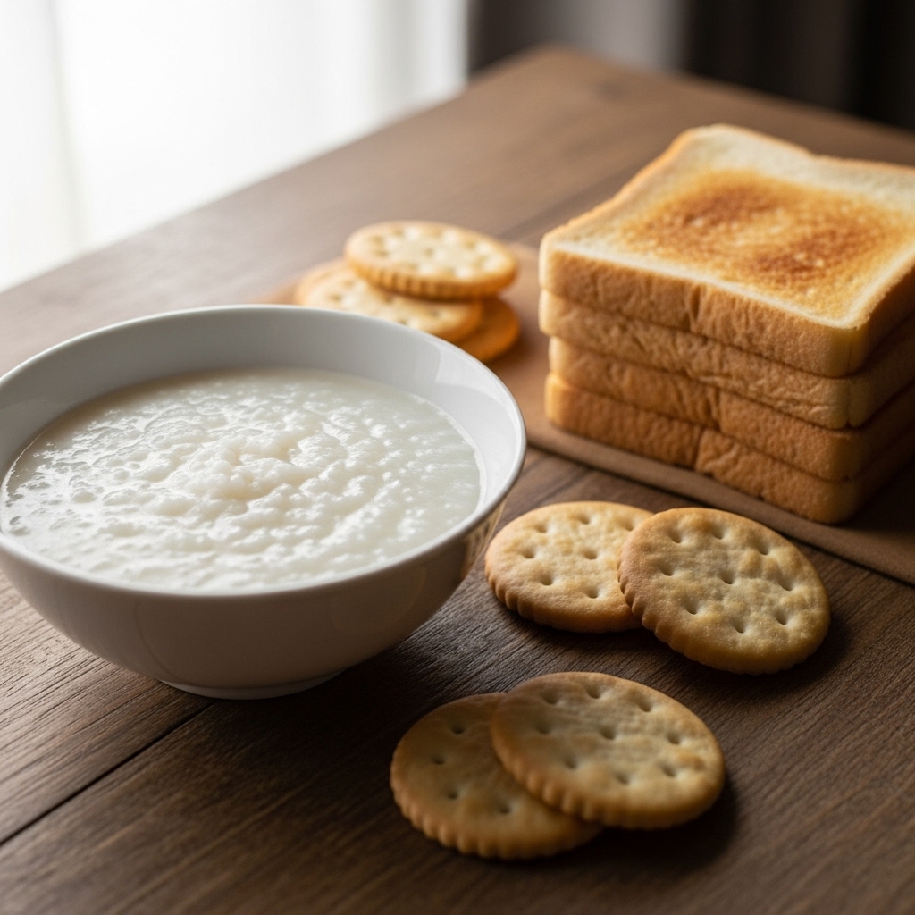 바나나, 크래커, 토스트, 흰쌀죽 같은 담백하고 소화가 잘 되는 음식을 조금씩 섭취하세요.