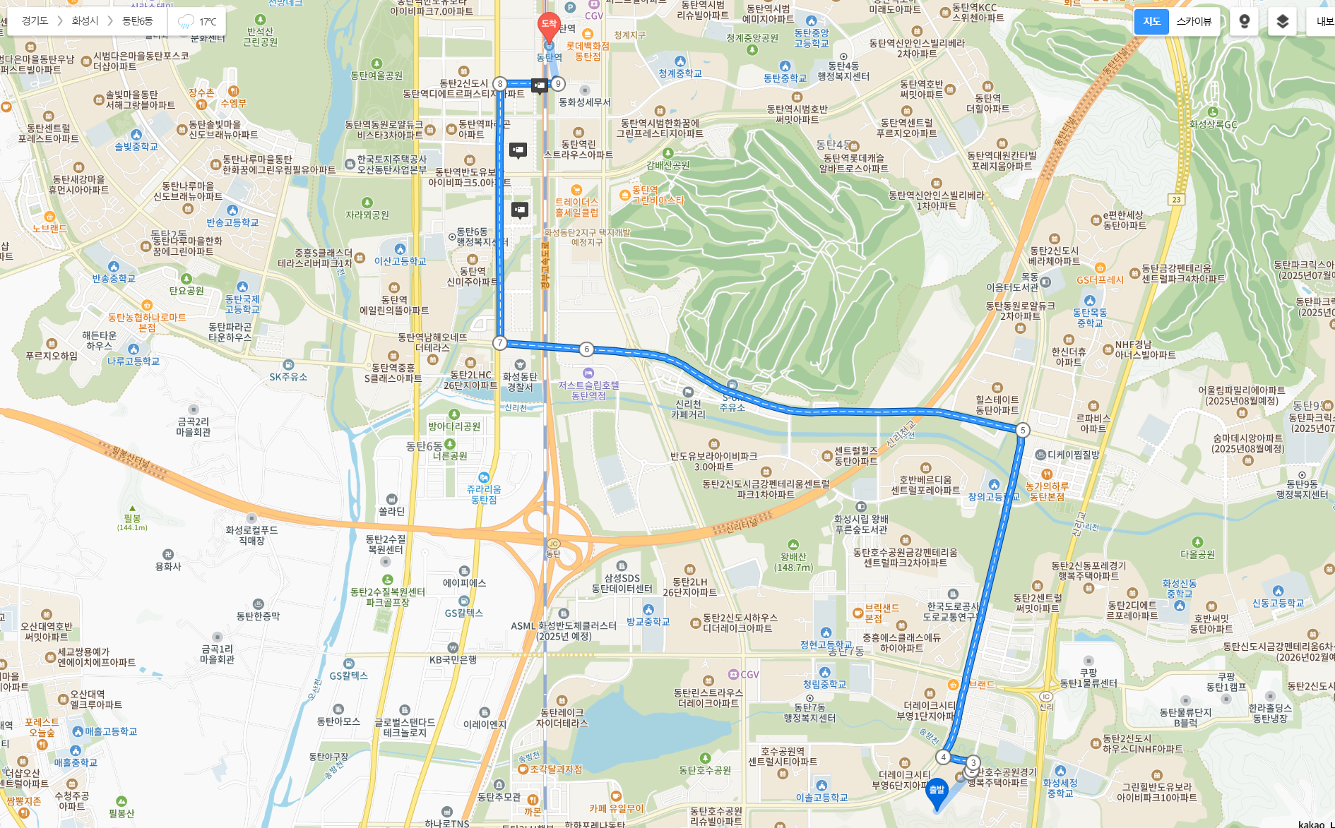 동탄역과 단지 간의 거리도 도보 이동이 가능한 수준으로 확인되고 있어요. 실제로 지도 상 이동 시간은 버스를 이용해 29분, 차량으로는 약 15분 정도 걸린다는 안내가 있어요. 🚌