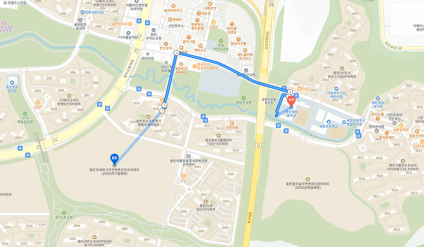 단지에서 도보 통학이 가능한 초등학교 거리도 지도상으로 확인돼요. 특히 안전한 통학로로 이어져 있다는 점이 학부모들에겐 큰 장점이죠. 🚸