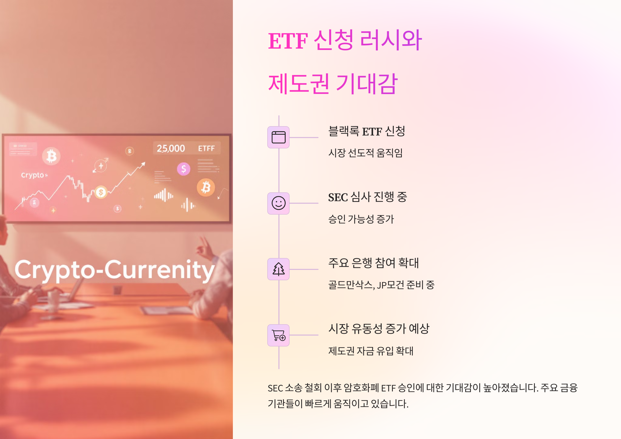시장에서는 이제 '리스크 해소'를 넘어서 '합법화된 자산'으로서의 재평가가 시작된 거예요. 이 흐름은 단기 상승보다 장기 구조적 상승에 더 큰 영향을 줄 수 있어요. 🌄