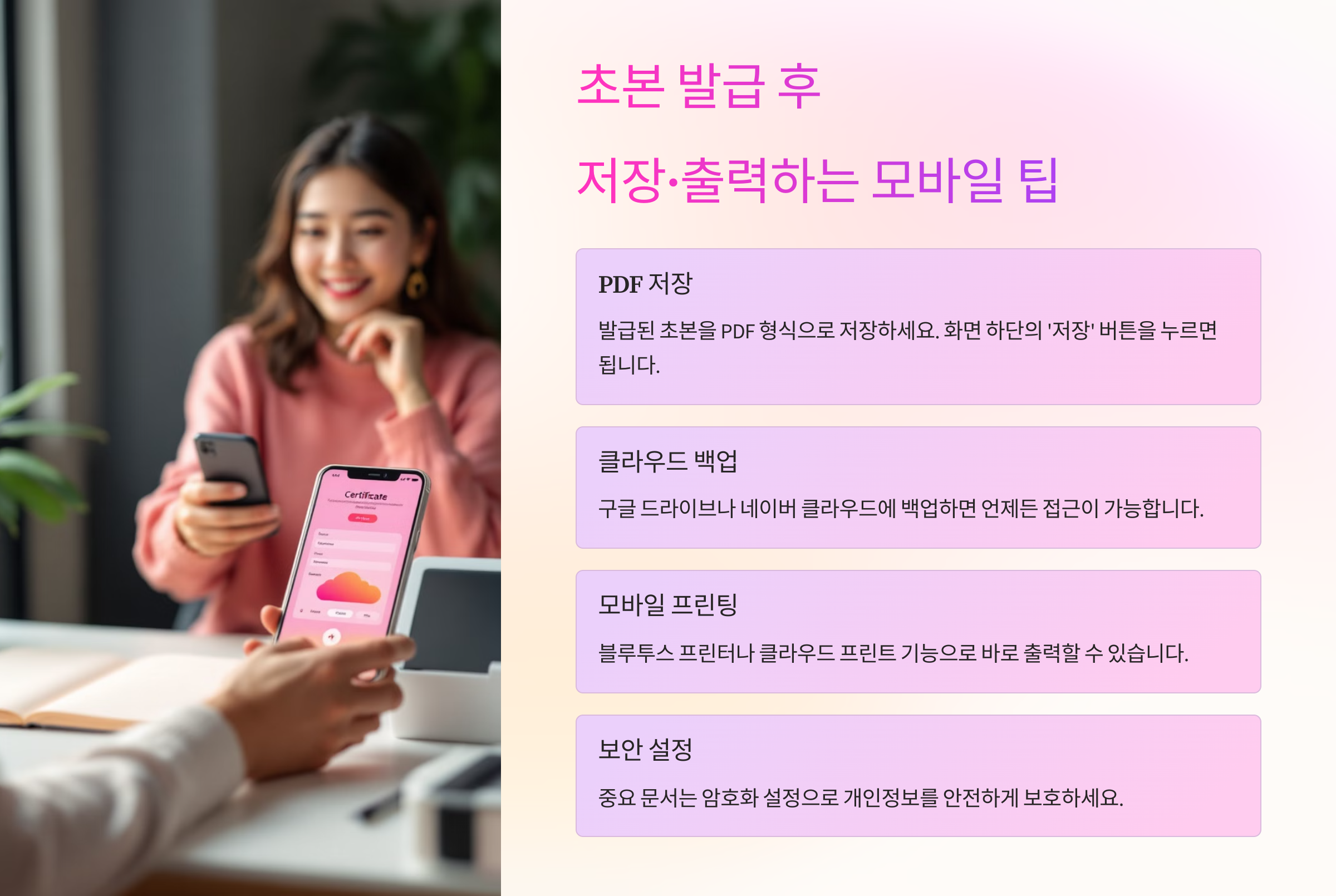 초본을 모바일로 발급받았다면 그다음 단계는 저장하고, 필요할 때 출력하거나 전송하는 일이에요. 발급 자체보다 이 후처리를 잘하는 게 훨씬 중요할 수 있어요. 특히 제출처에서 '프린트된 서류만 받는다'거나 'PDF 파일을 이메일로 보내달라'는 경우, 서류를 깔끔하게 관리하고 출력할 수 있어야 하죠. 지금부터 스마트폰에서 초본을 저장하고 출력하는 데 꼭 필요한 팁들을 알려줄게요. 📄