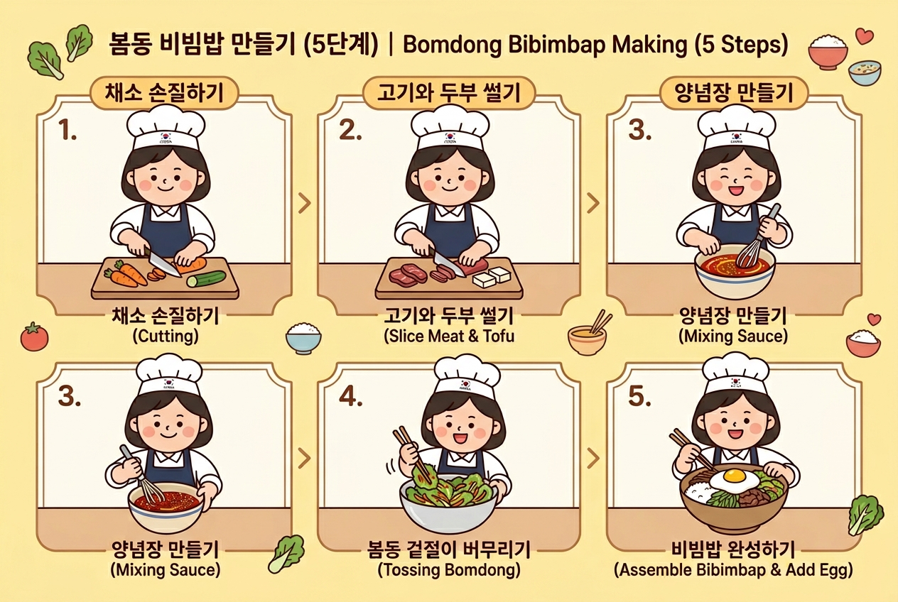 봄동비빔밥 맛있게 만드는 법 5단계 인포그래픽