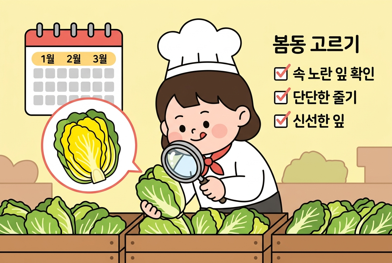 헬스조선 보도에 따르면, 봄동의 겉잎은 질기고 두꺼워 된장국이나 전에 활용하고, 부드러운 노란 속잎을 비빔밥이나 겉절이에 사용하는 것이 최적이에요. 한 포기를 알뜰하게 활용할 수 있는 방법이죠.