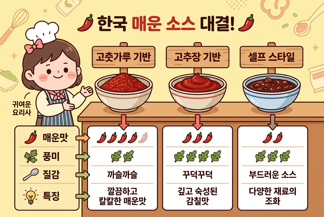 구분 고춧가루 기반 (추천) 고추장 기반 임성근 셰프 스타일
