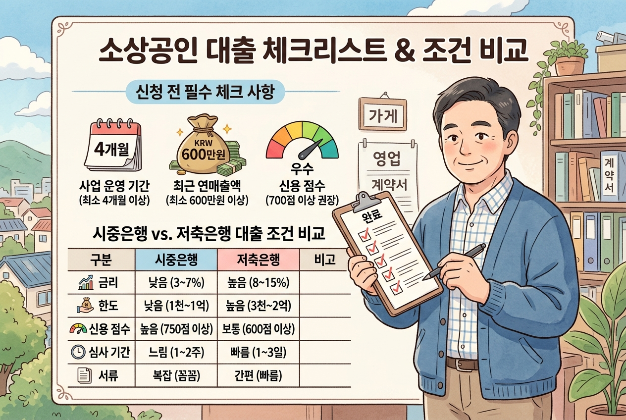 자영업자는 본인 신용등급과 사업기간에 따라 은행 우선 → 저축은행 순서로 신청하는 전략이 효과적입니다.