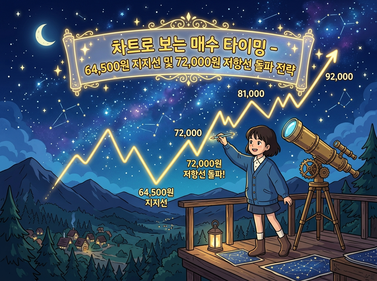 현재 강력한 지지선은 64,500원 부근에 형성되어 있습니다. 이 구간에 도달할 때마다 저가 매수세가 유입되는 것을 확인할 수 있어요. 반면 상단 저항선인 72,000원 선을 돌파한다면 역사적 신고가를 경신할 가능성도 충분하다고 봅니다.