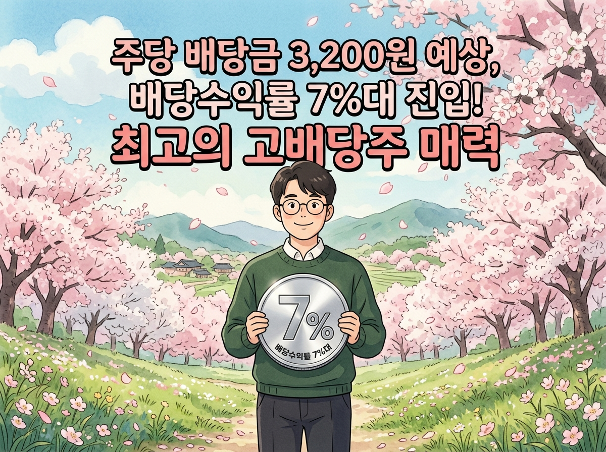 배당주 투자는 주가가 조정을 받을 때 사서 모으는 것이 정석이에요. 배당수익률이 7% 이상이 되는 가격대가 오면 강력한 저점 매수 기회로 활용해 보세요.