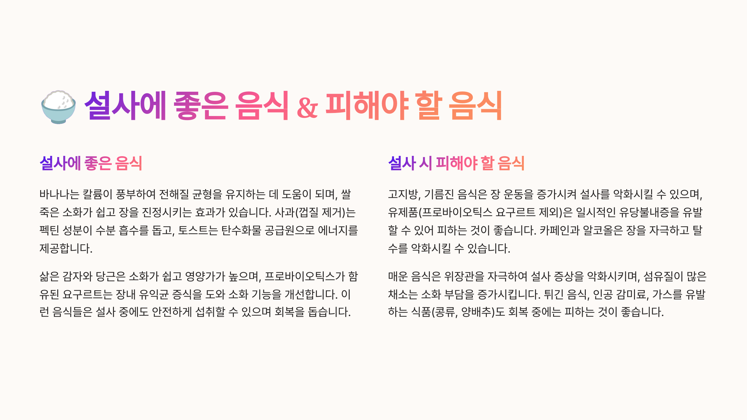🍚 설사에 좋은 음식 & 피해야 할 음식