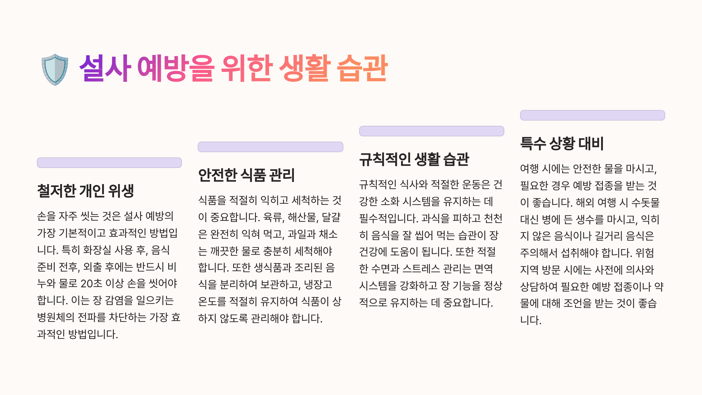 다음 섹션에서는 설사를 예방하는 생활 습관을 알아볼게요! 🛡