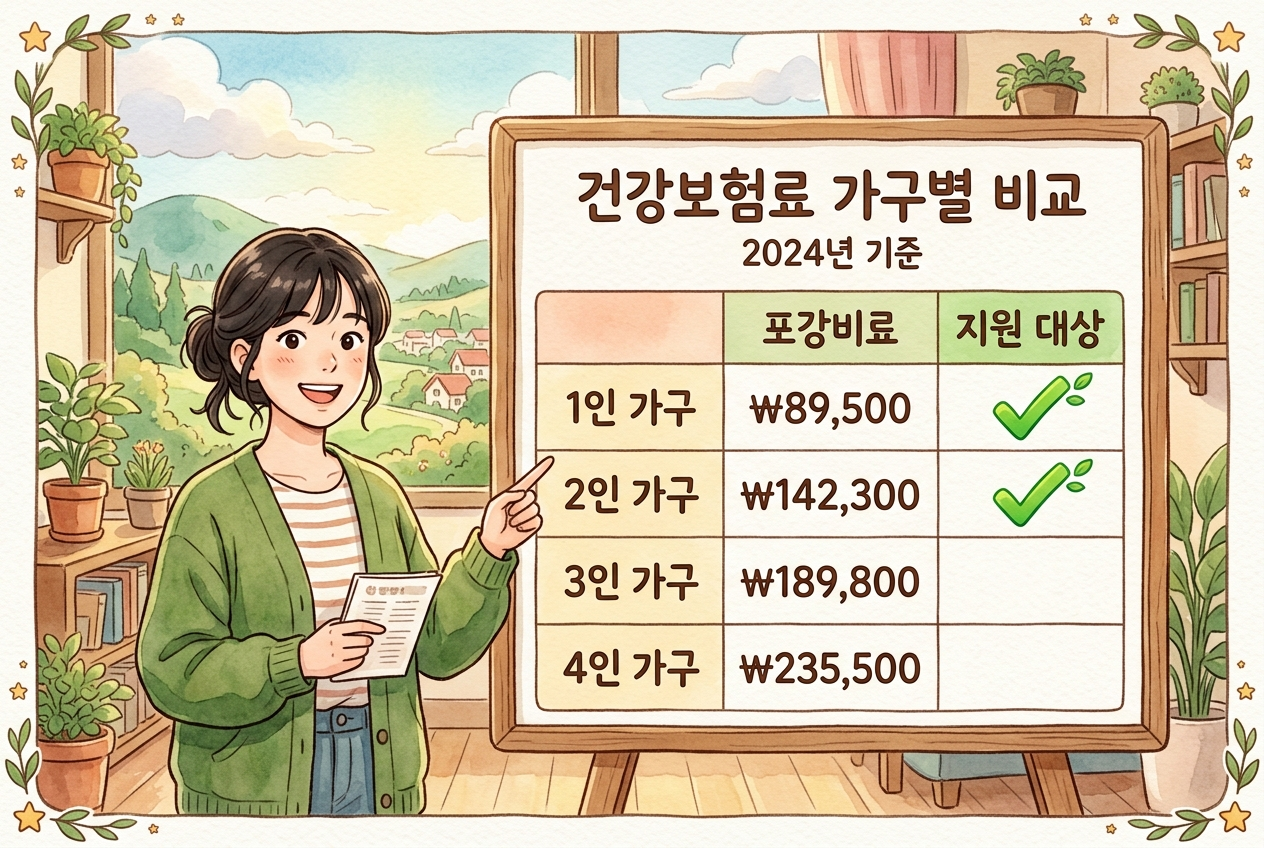 예를 들어 맞벌이 4인 가구라면 5인 가구 건보료 기준이 적용돼요. 직장가입자 기준으로 하위 70%에 해당하려면 가구 합산 건보료가 약 41만 원 이하여야 하는 거죠.