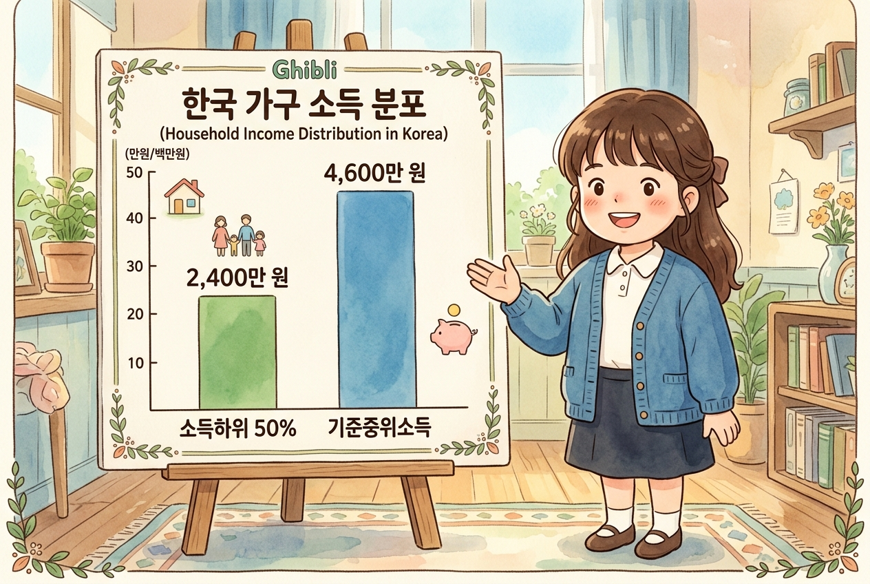 중위소득은 평균소득과 다릅니다. 전체 가구를 소득 기준으로 1등부터 꼴등까지 줄 세웠을 때, 정확히 가운데에 있는 가구의 소득이에요. 이 수치를 보건복지부가 매년 고시하고, 복지 사업의 대상자 선정 기준으로 활용하고 있습니다.