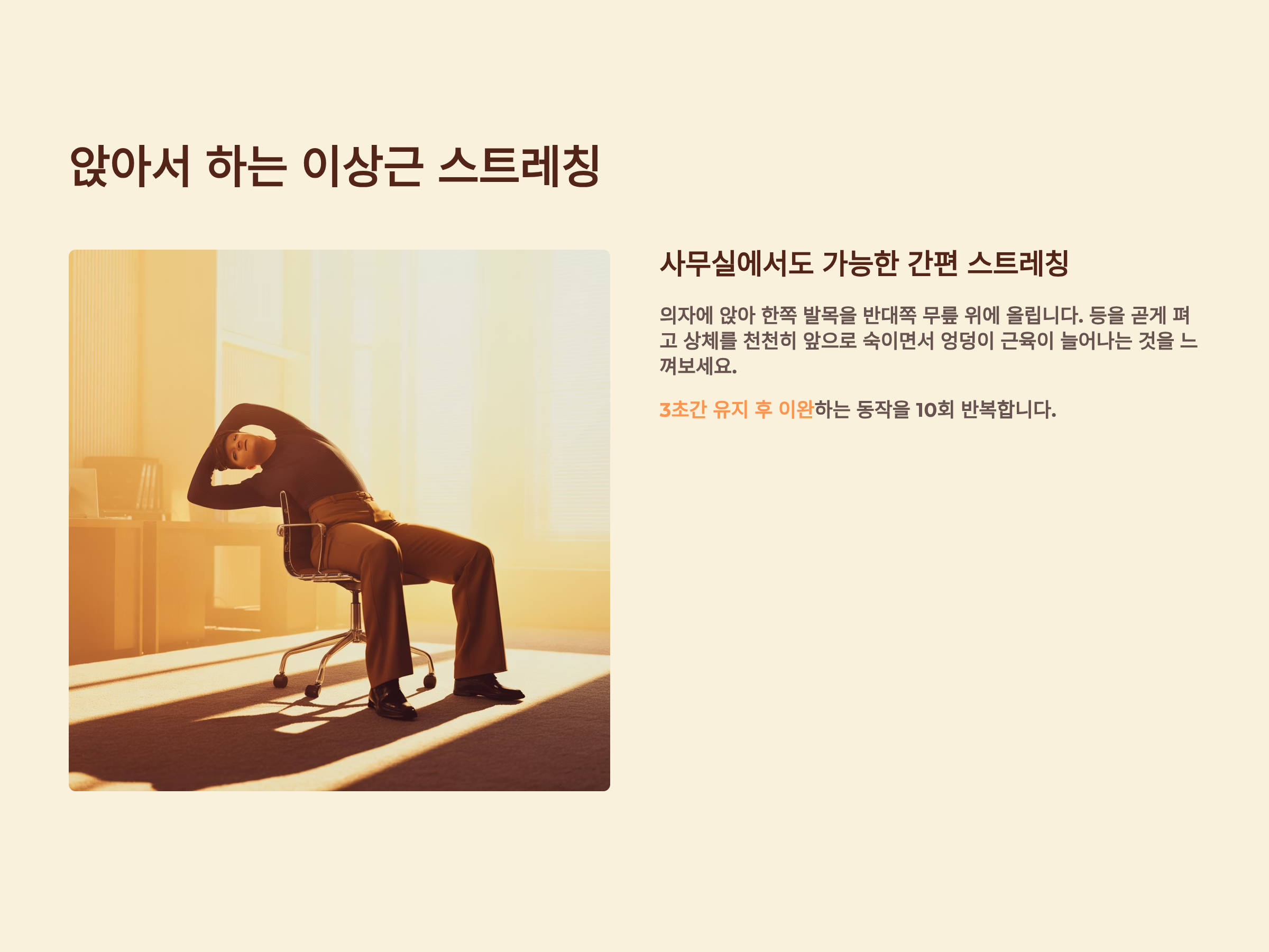 앉아서 하는 이상근 스트레칭 상체를 앞으로 숙이기 3초씩 반복 엉덩이 근육 이완