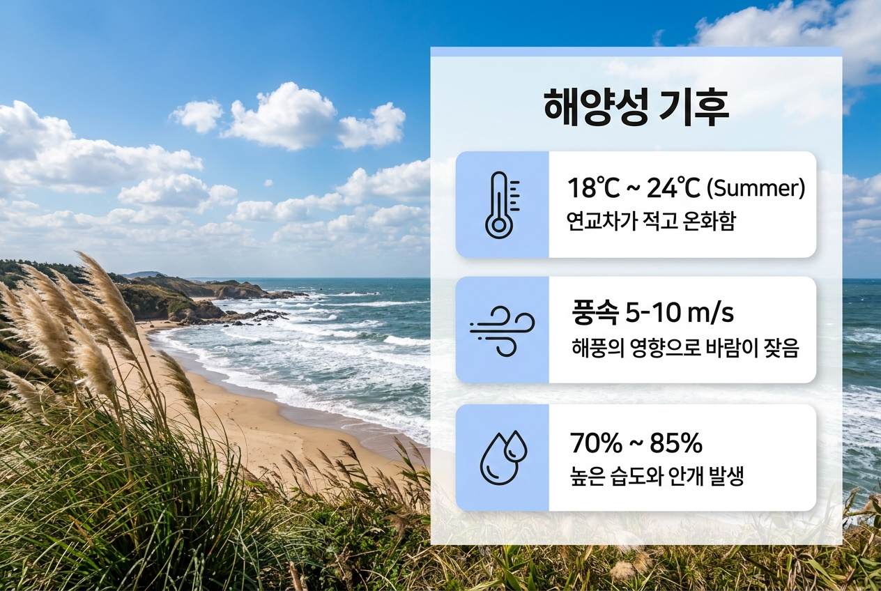 🚀 결론부터 말하면: 영종도는 해양성 기후의 영향으로 내륙보다 여름은 서늘하고 겨울은 바람이 강하며, 여행 최적 시기는 5월과 9~10월입니다.
