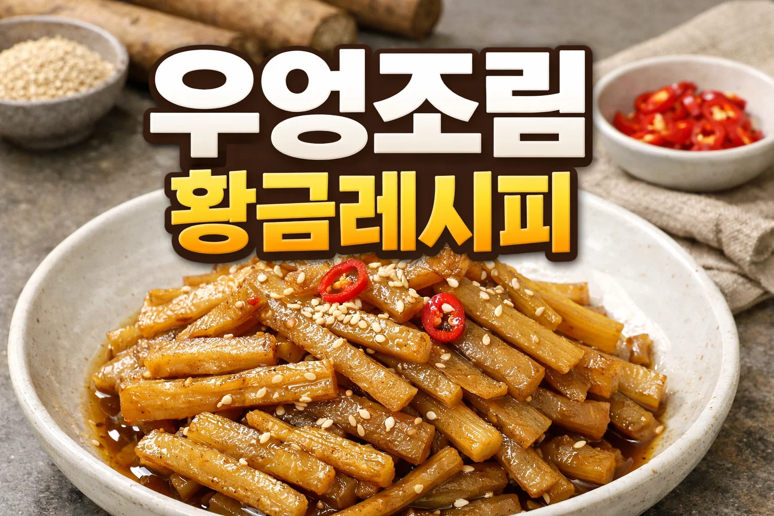 밑반찬으로 우엉조림만큼 든든한 것도 드물죠. 아삭하면서도 달콤 짭조름한 맛에 한번 만들어두면 일주일 내내 밥도둑 역할을 톡톡히 해줍니다. 그런데 막상 만들어보면 아린맛이 남거나, 질기거나, 윤기가 안 나서 고민하는 분들이 많다고 해요.