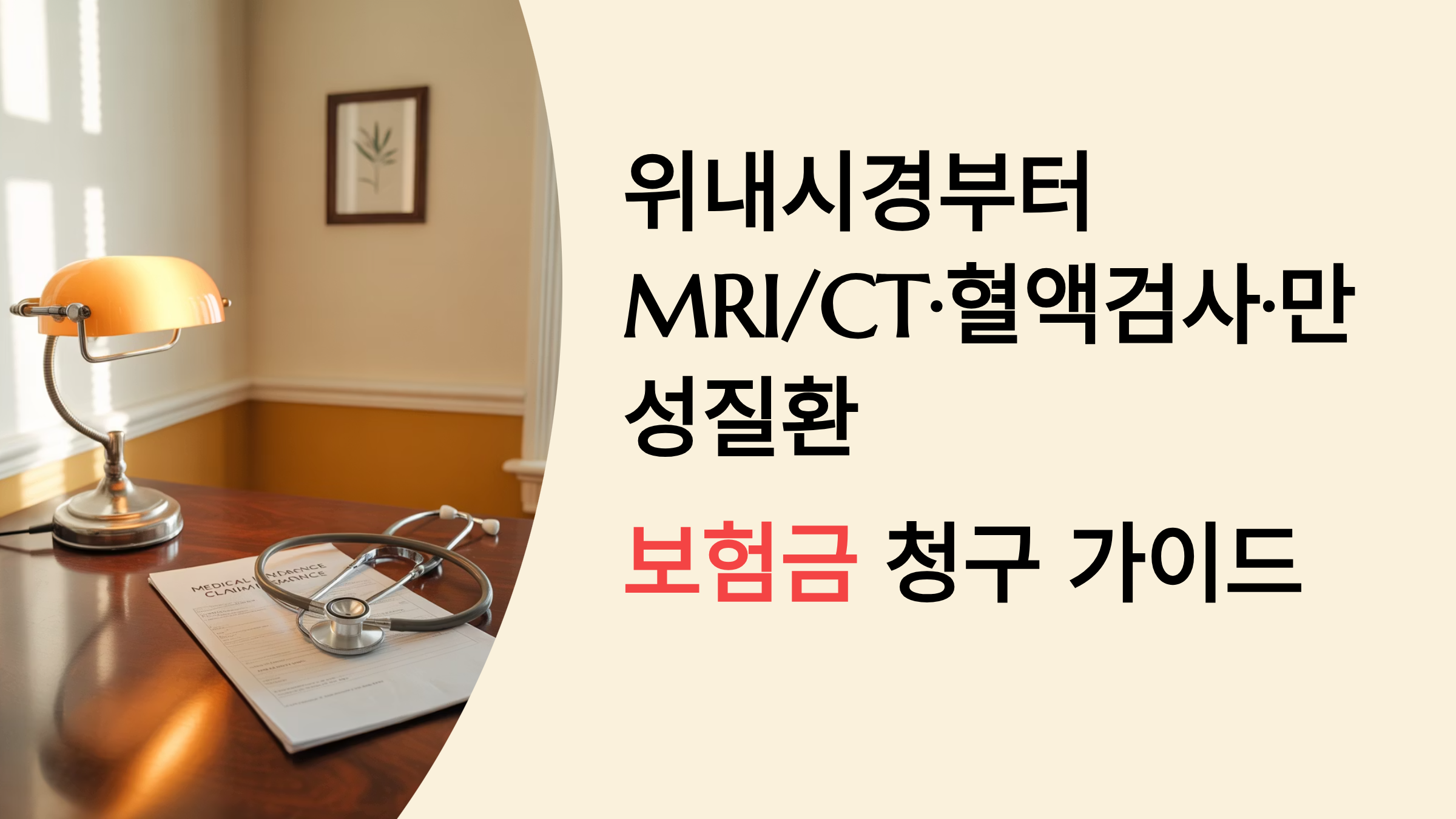 MRI, CT부터 내시경, 혈액검사, 만성질환까지 — 다양한 진료 항목에 대해 보험금 청구가 가능한지 여부는 정말 헷갈리기 쉬워요. 진단 목적인지, 단순 검진인지에 따라 보장 여부도 달라지기 때문에 정확한 기준이 필요해요.