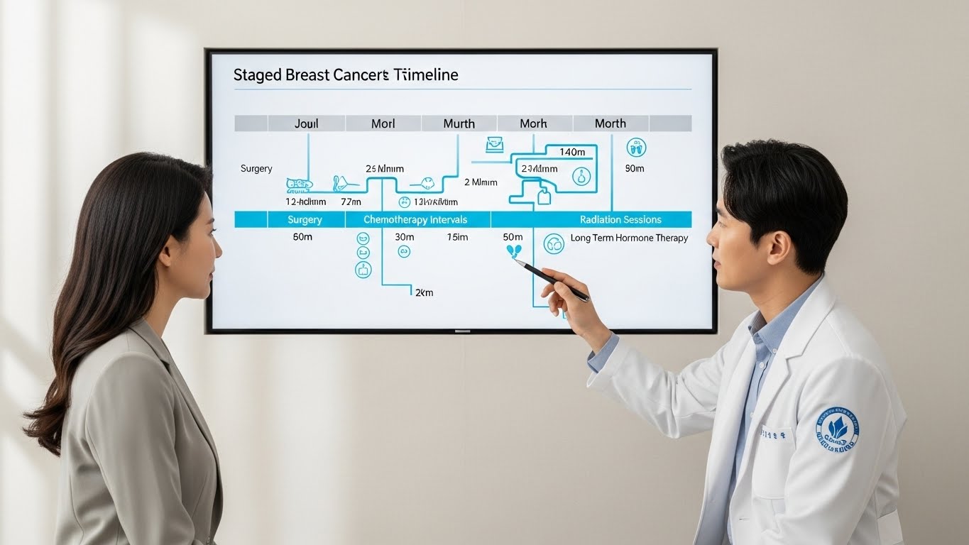 유방암 치료는 단순한 수술만으로 끝나지 않으며, 수술, 항암치료, 방사선치료, 호르몬치료 등이 복합적으로 진행되는 장기적 과정입니다. 조기에 발견될수록 치료 기간이 짧고 완치 가능성이 높지만, 정확한 치료기간을 미리 알아두는 것이 심리적 준비와 실생활 계획에 매우 중요합니다.