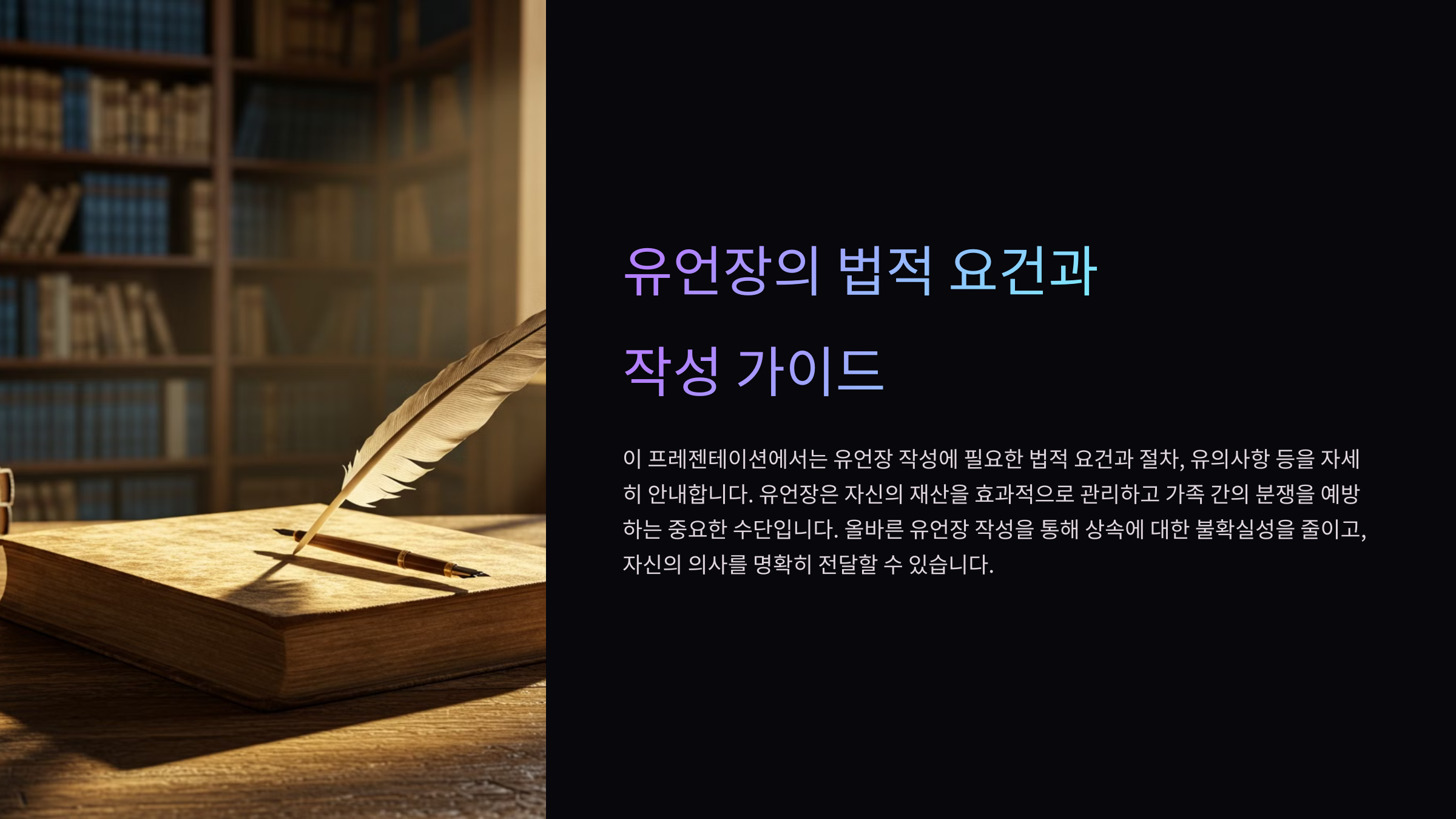 | 유언 내용의 명확성 | 재산 분배 대상과 비율을 구체적으로 기재해야 함 |