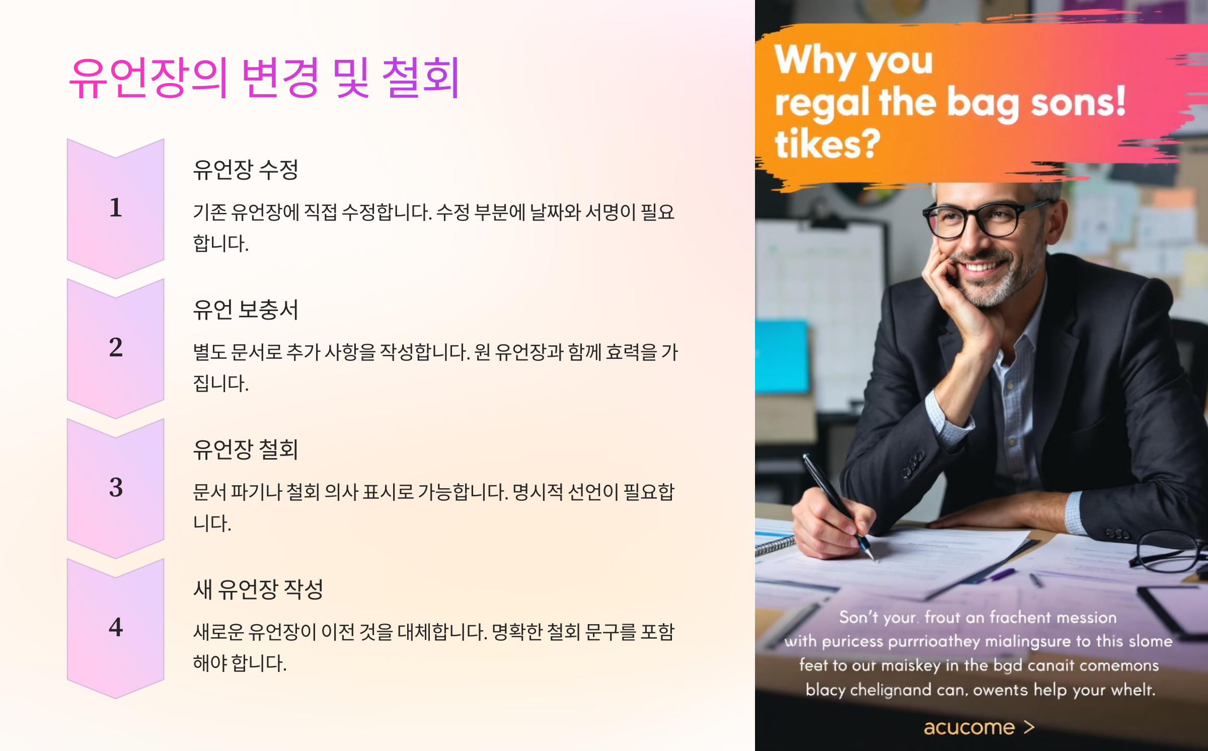 - 📌 정기적 검토: 상황이 변하면 유언장을 수정하거나 갱신해요.
