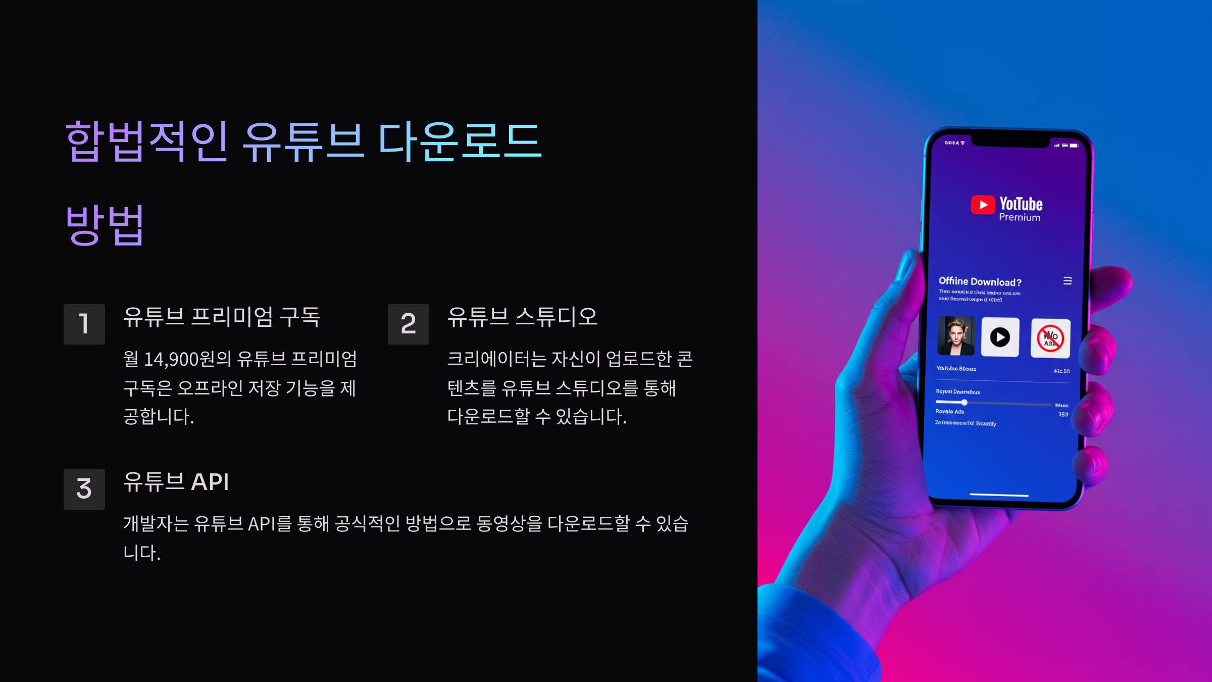 유튜브 다운로드를 합법적으로 이용하는 방법과 가장 안전한 방법을 다음 섹션에서 자세히 살펴볼게요.