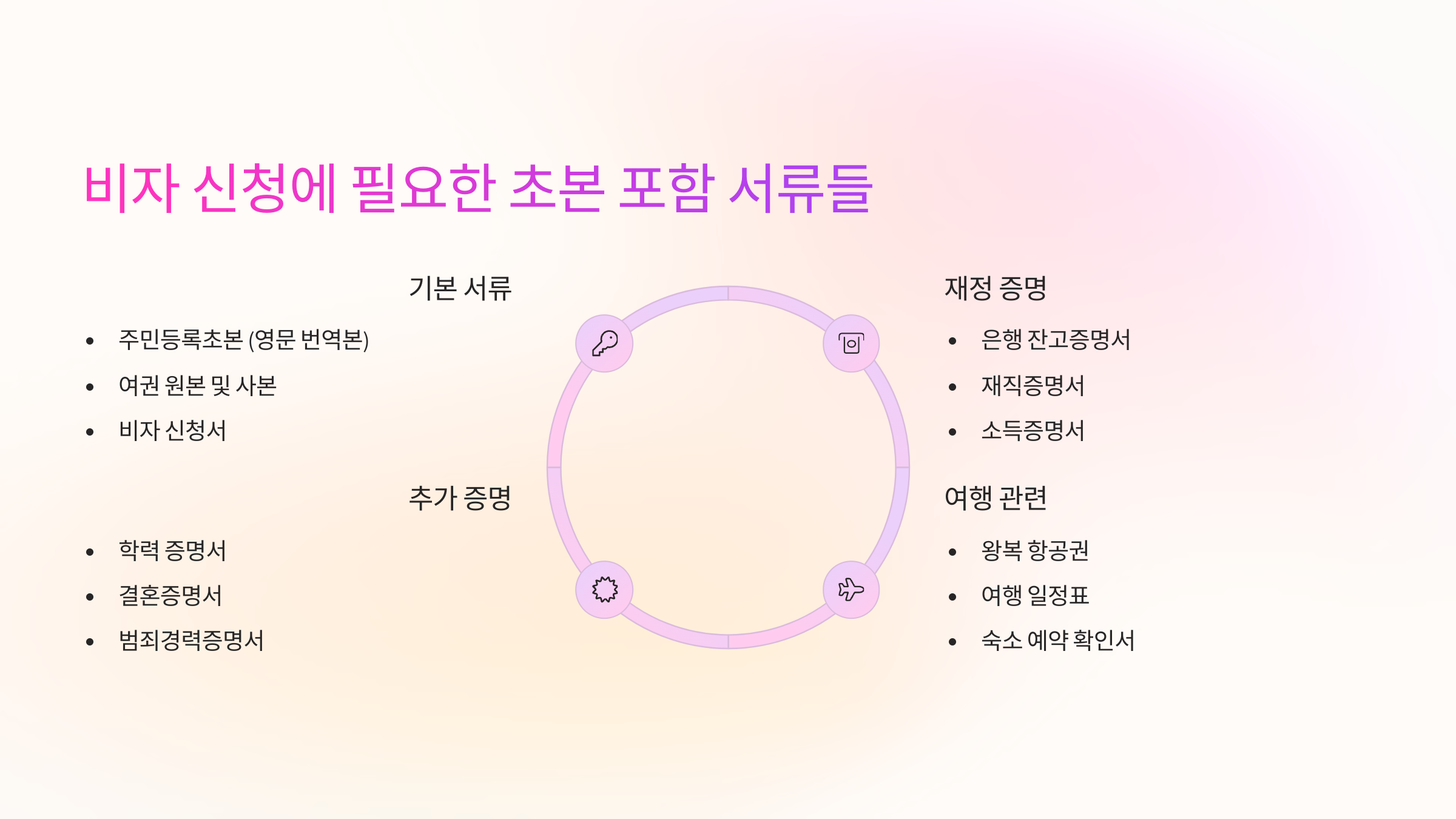 초본 외에도 각 나라, 비자 종류에 따라 필요한 서류 조합이 달라요. 아래는 대표적인 비자 유형별로 초본과 함께 준비해야 할 서류 조합을 정리한 표예요. 🗂️