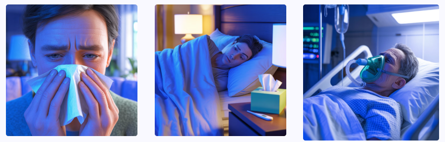 특히 고령자, 기저질환자는 경증에서 중증으로 급격히 악화될 수 있어 초기부터 주의 깊은 모니터링이 필요합니다.