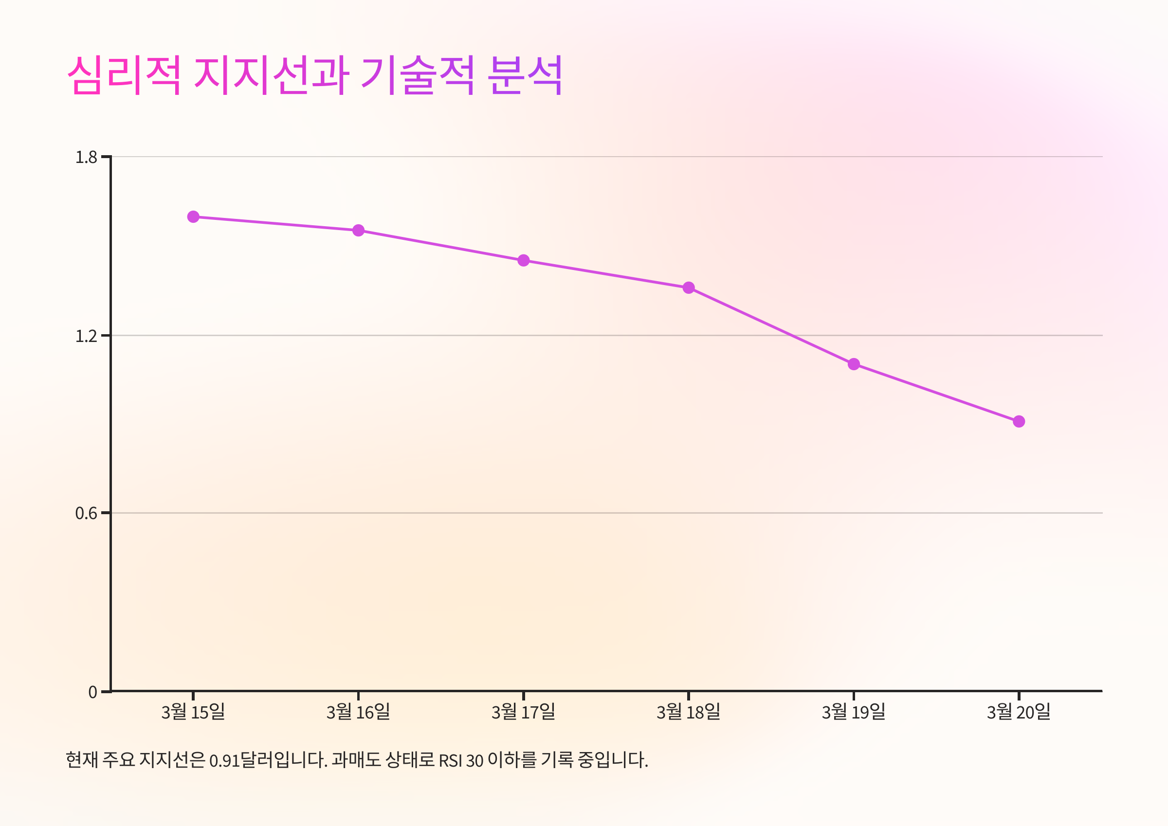 자, 그럼 시장은 지금 어떤 기술적 흐름을 보이고 있을까요? 다음 박스에서는 0.70달러 지지선과 기술적 분석을 통해 지금 위치가 어느 정도인지를 함께 볼게요! 📊