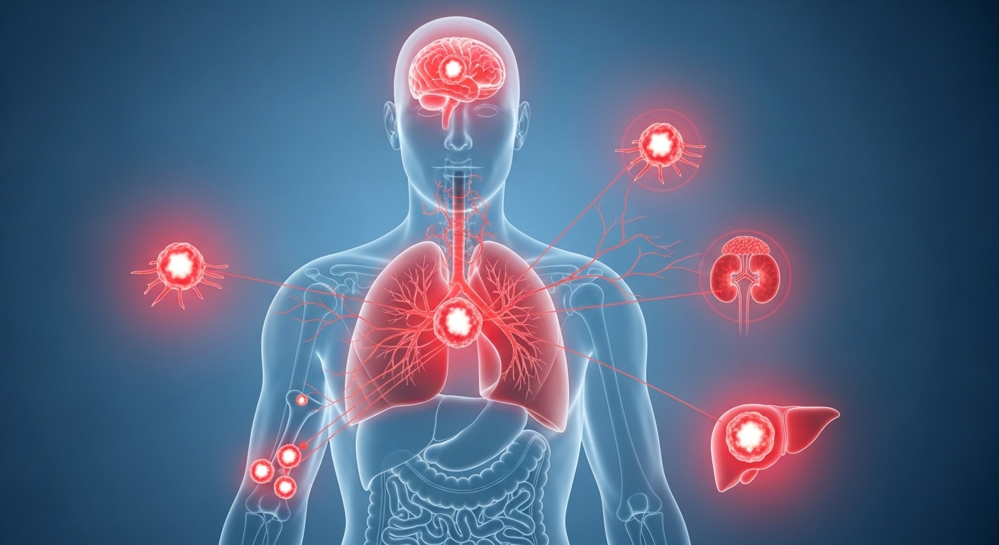 폐암이 다른 장기로 전이되면 전이된 부위에 따라 다양한 증상이 나타납니다. 이는 폐암이 상당히 진행된 상태를 의미합니다.