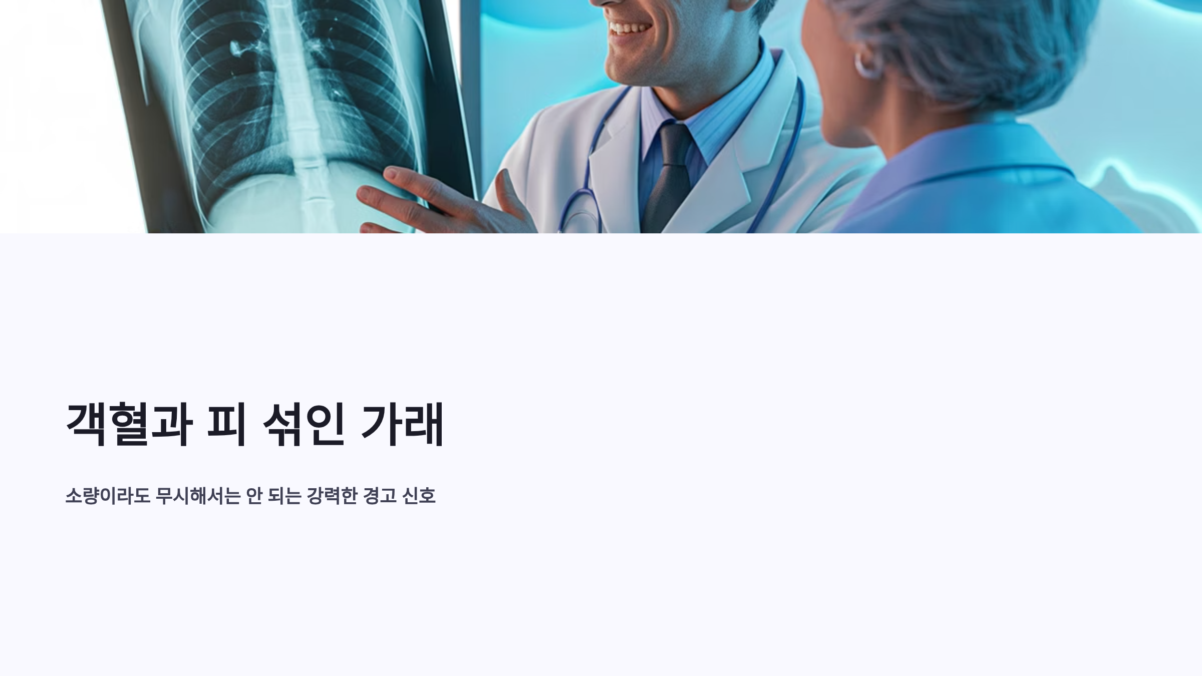 기침과 함께 피가 섞인 가래나 녹슨 색의 가래가 나온다면 폐암의 강력한 신호일 수 있습니다. 객혈은 폐 조직의 손상을 의미하며, 소량이라도 무시해서는 안 됩니다. 이러한 증상은 폐암이 어느 정도 진행되었을 가능성을 시사합니다.