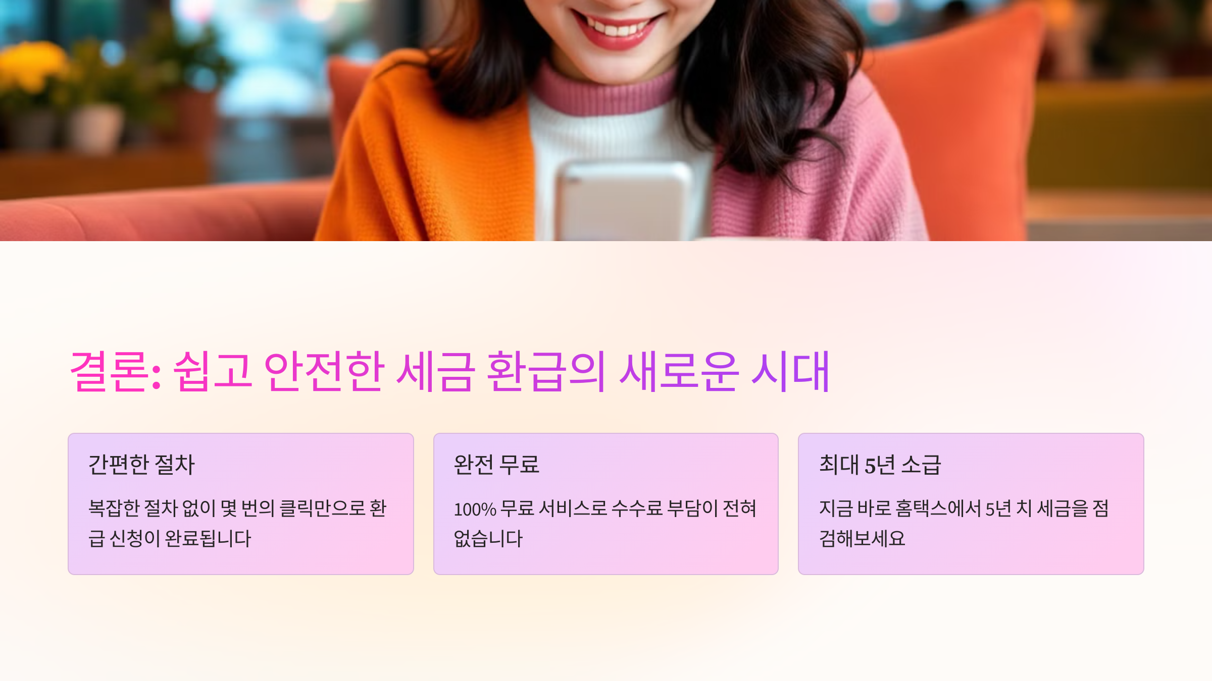 조금만 천천히 따라 하면 누구나 무료로, 수수료 없이 환급받을 수 있다는 점! 이건 놓치면 너무 아깝죠? 😉