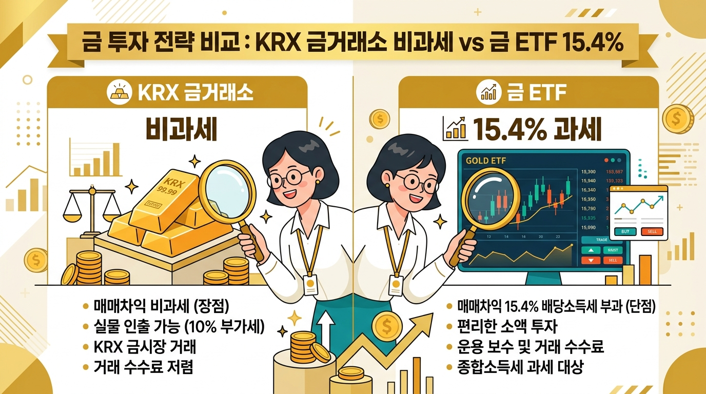 : KRX 금거래소와 금 ETF 세금 비교 인포그래픽