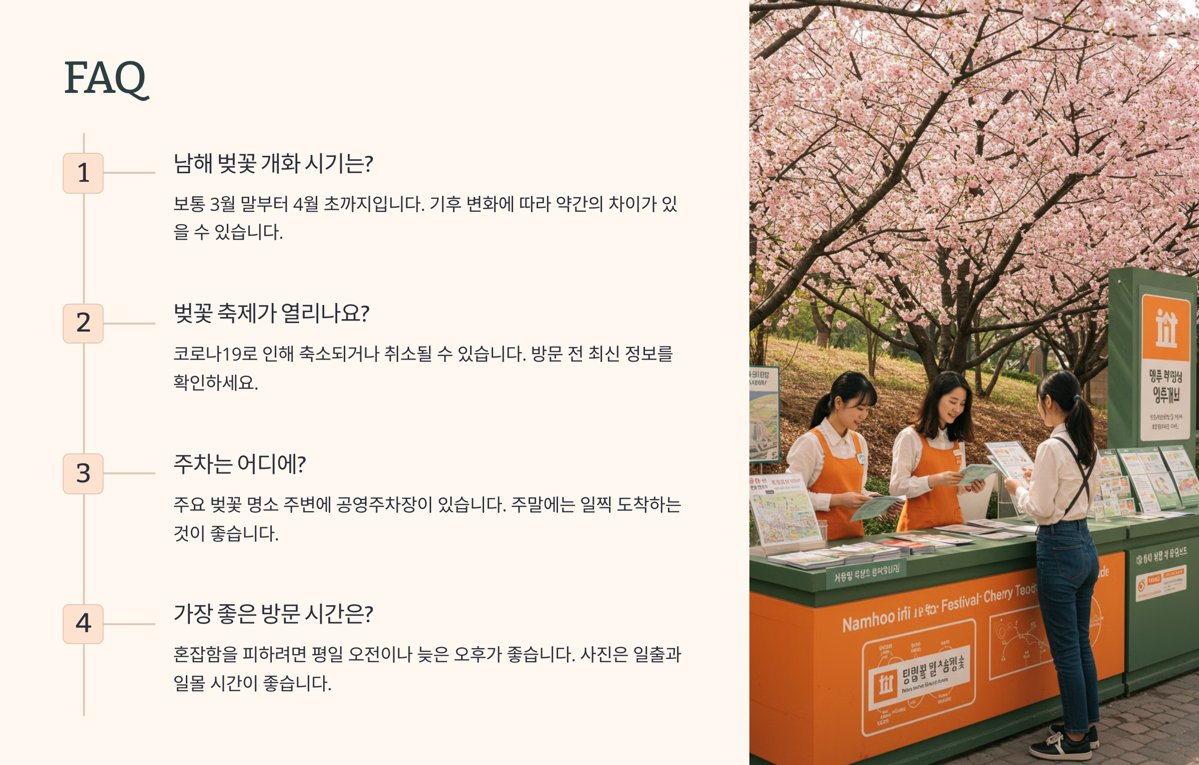 Q1. 남해 벚꽃 개화 시기는 언제인가요?