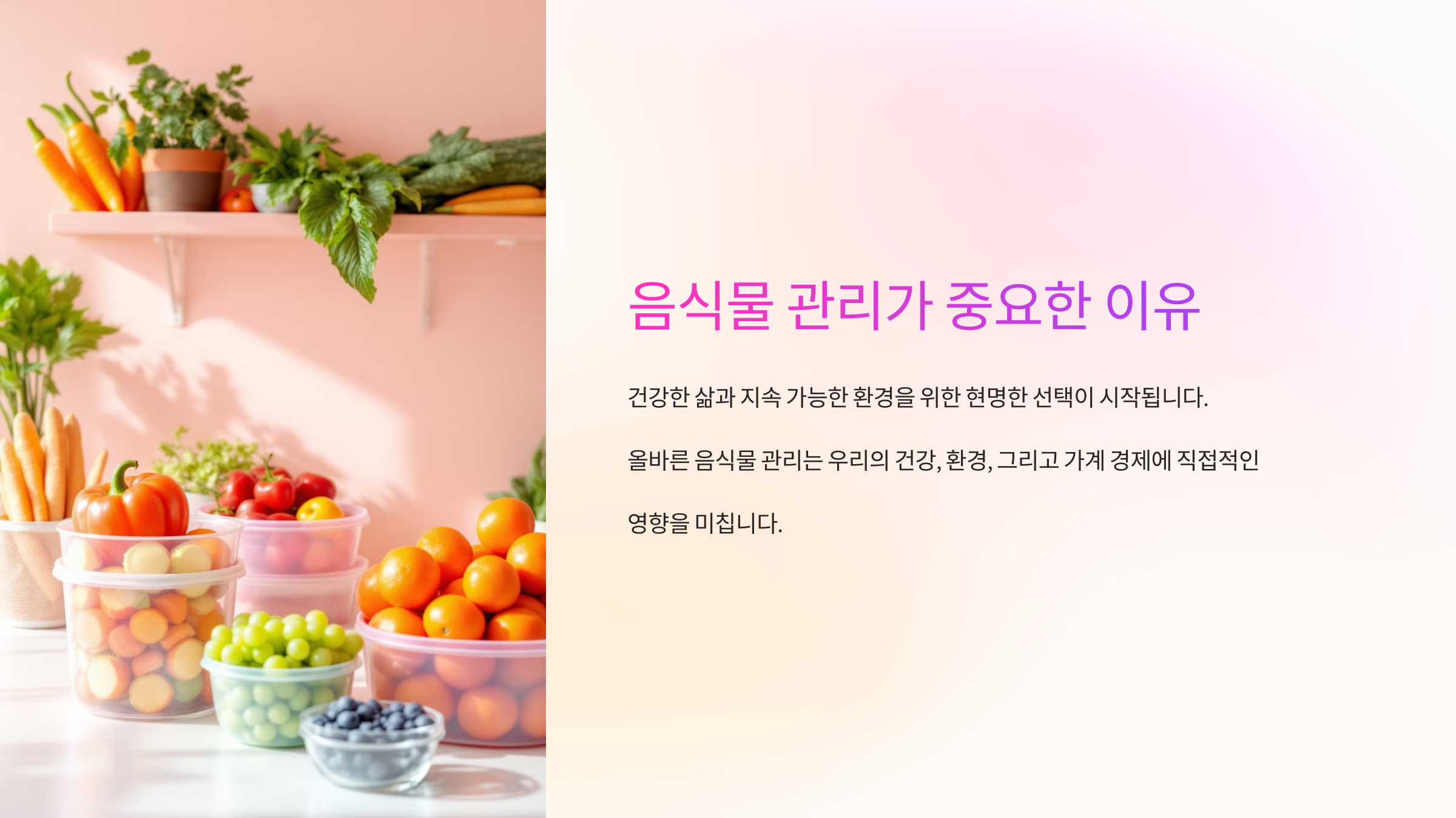 음식물 관리는 단순히 신선도를 유지하는 것뿐만 아니라 환경 보호, 건강 증진, 경제적 절약에도 큰 영향을 미쳐요. 올바른 음식물 보관과 처리는 음식물 쓰레기를 줄이고, 건강한 식습관을 유지하는 데 중요한 역할을 해요.