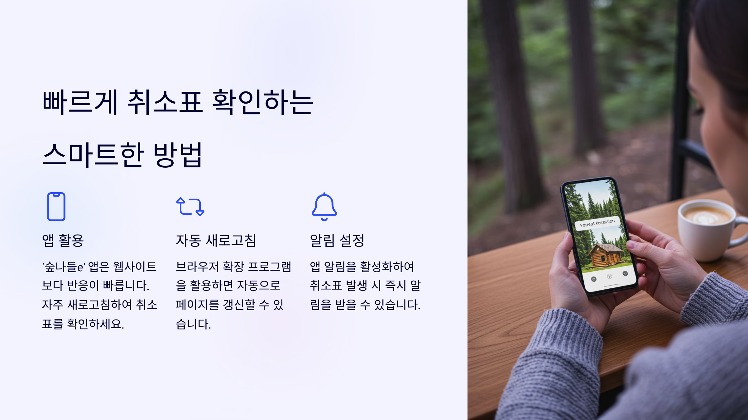 특히 성수기나 주말에는 갑자기 여행 계획이 변경되면서 취소표가 자주 발생해요. 이번 글에서는 국립자연휴양림 당일 취소표를 잡는 필수 전략을 알려드릴게요! 🌲